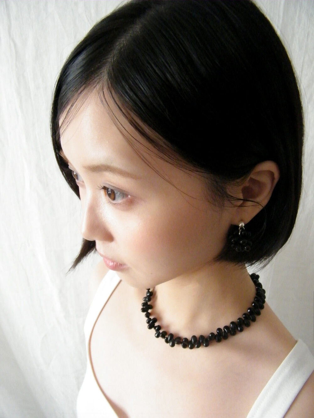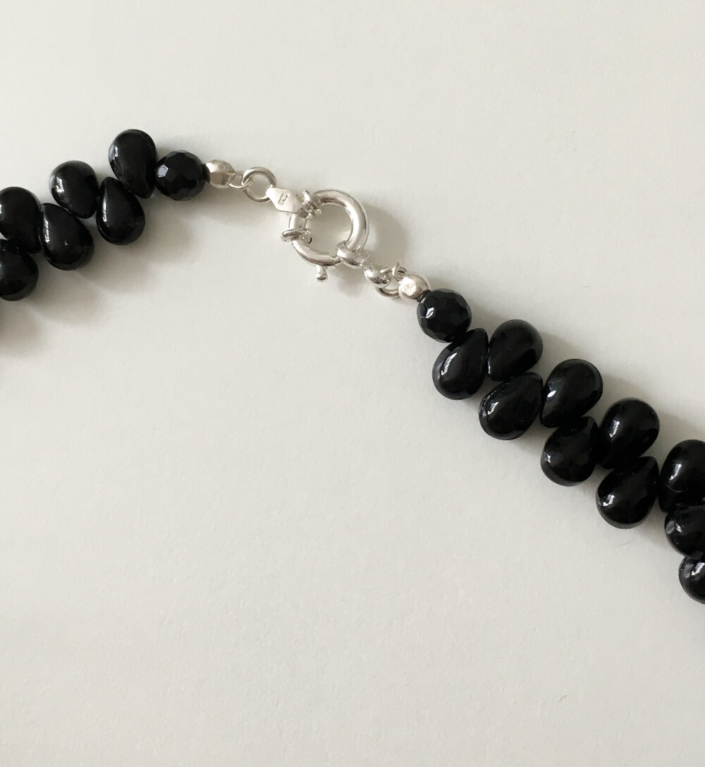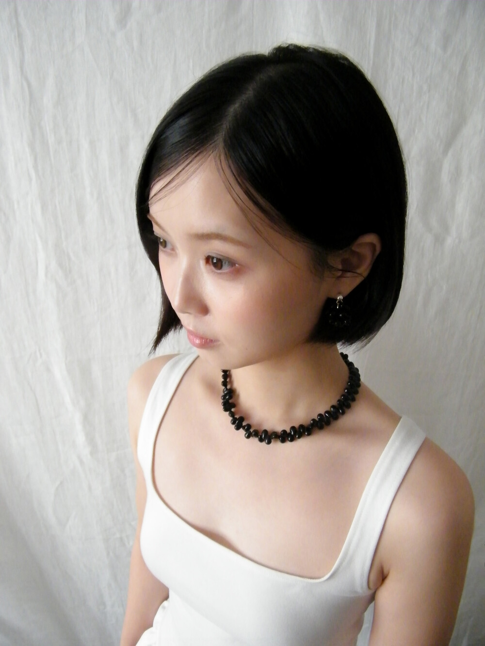 타임리스하게 즐길 수 있는 블랙 오닉스 네크리스입니다. 일반적인 원형이 아닌 물방울 쉐입의 유니크한 라인이 더해져 독특한 포인트가 되어줍니다. 네크라인을 따라 불규칙하게 배열된 오닉스 글라스는 차분한 룩에는 묵직한 존재감을, 디테일이 많은 룩에는 위트 있는 감각을 더해줍니다.