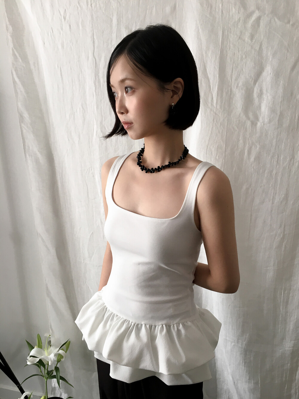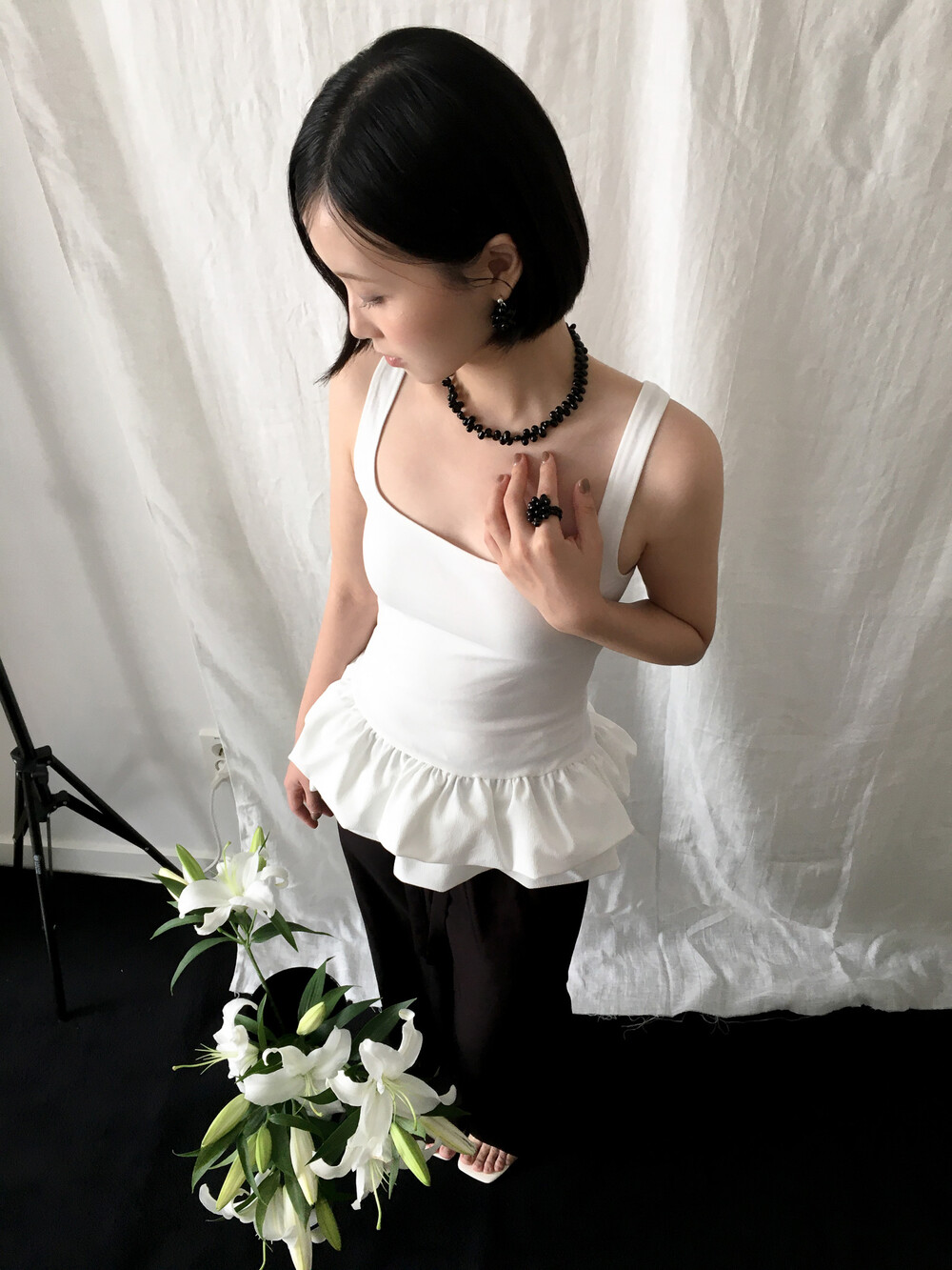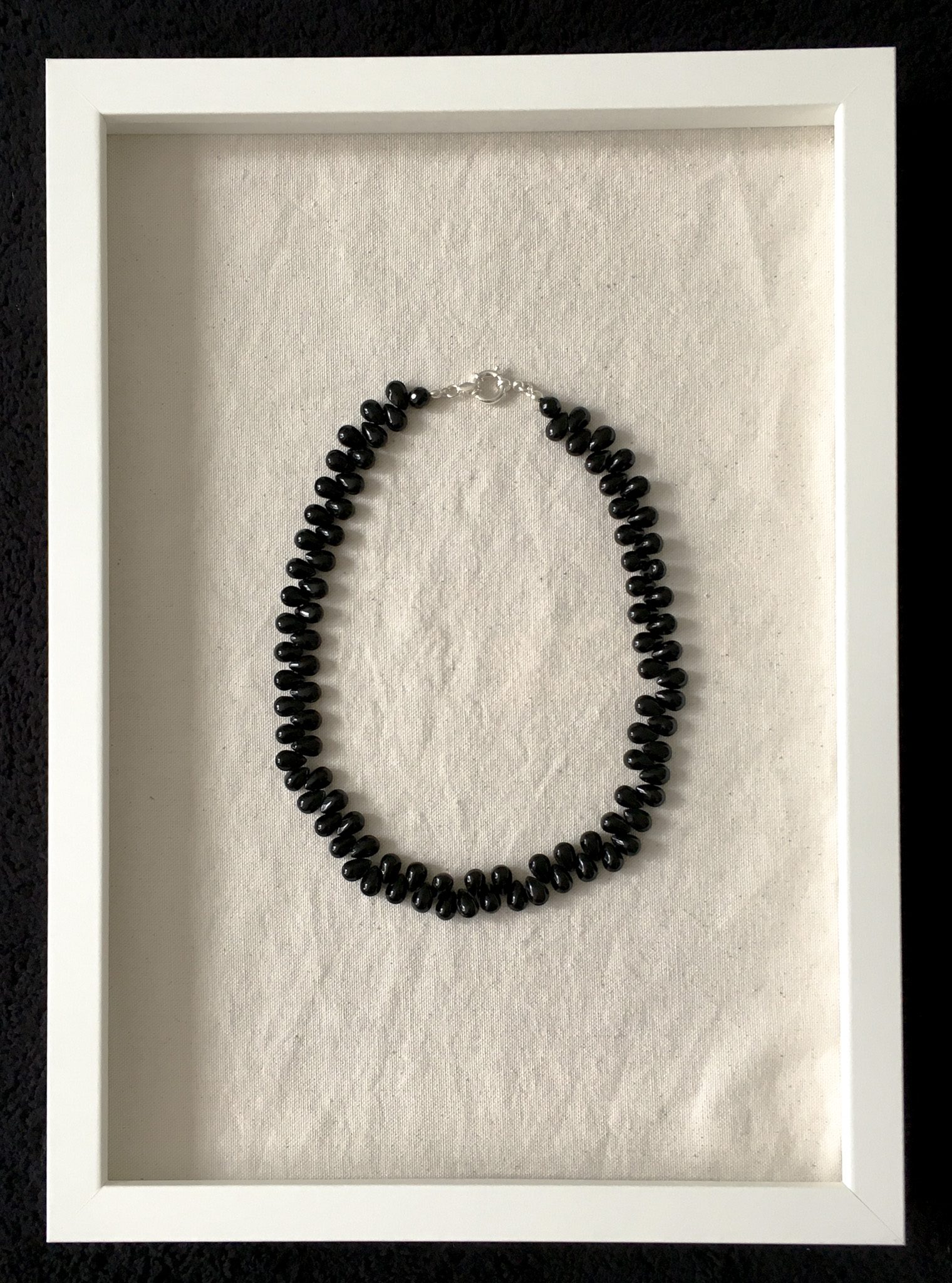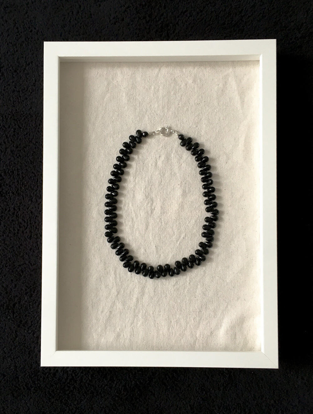 타임리스하게 즐길 수 있는 블랙 오닉스 네크리스입니다. 일반적인 원형이 아닌 물방울 쉐입의 유니크한 라인이 더해져 독특한 포인트가 되어줍니다. 네크라인을 따라 불규칙하게 배열된 오닉스 글라스는 차분한 룩에는 묵직한 존재감을, 디테일이 많은 룩에는 위트 있는 감각을 더해줍니다.