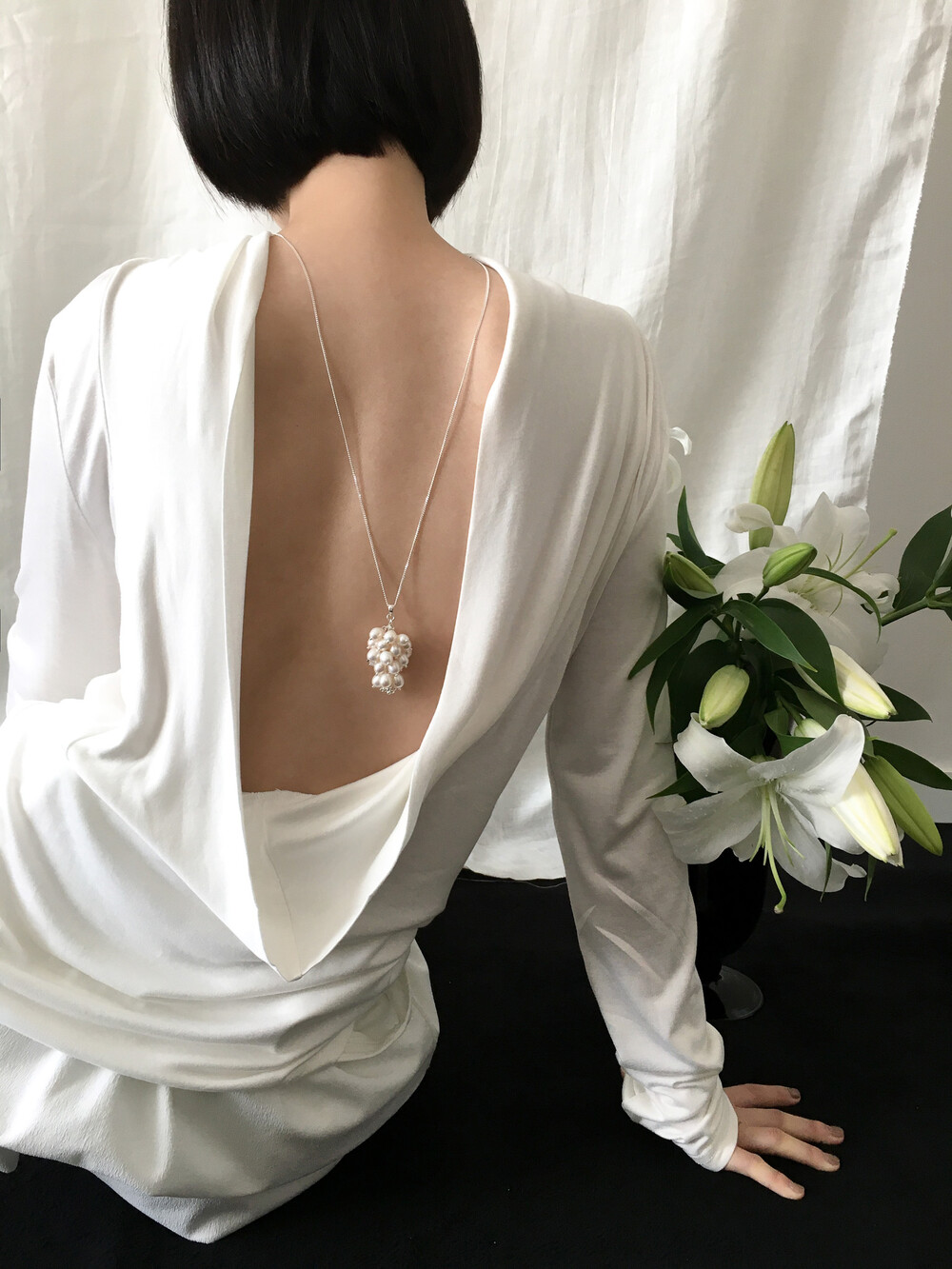 material - freshwater pearl - sterling silver(925) chain - sterling silver(925) ball