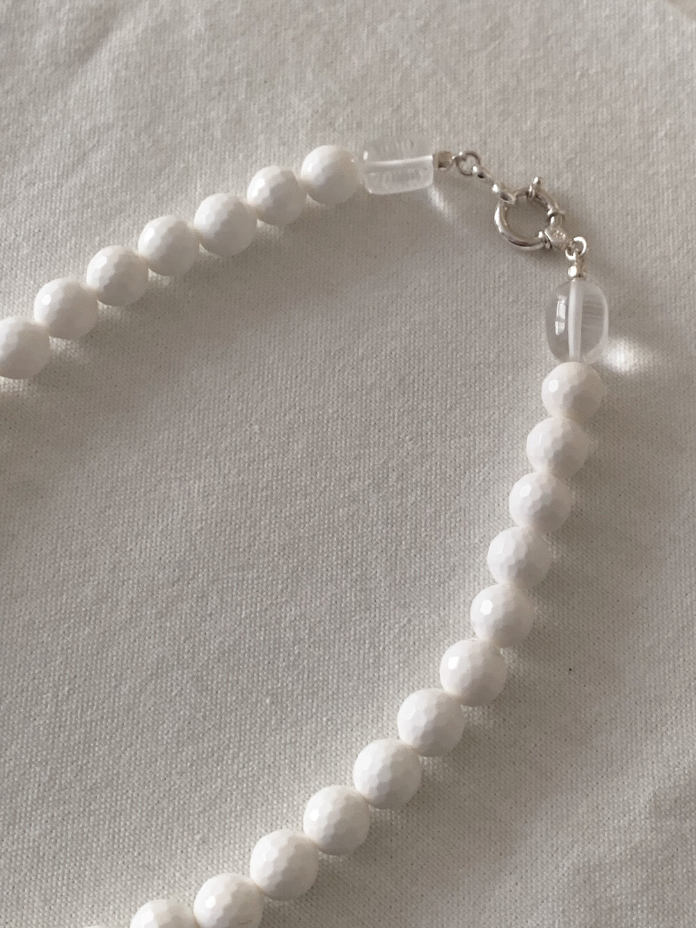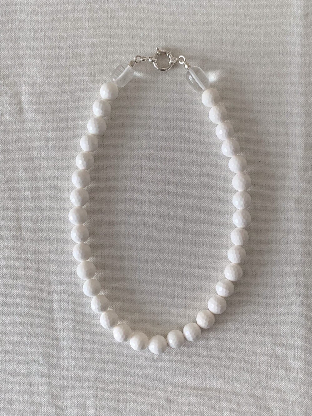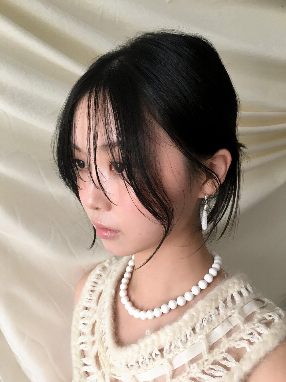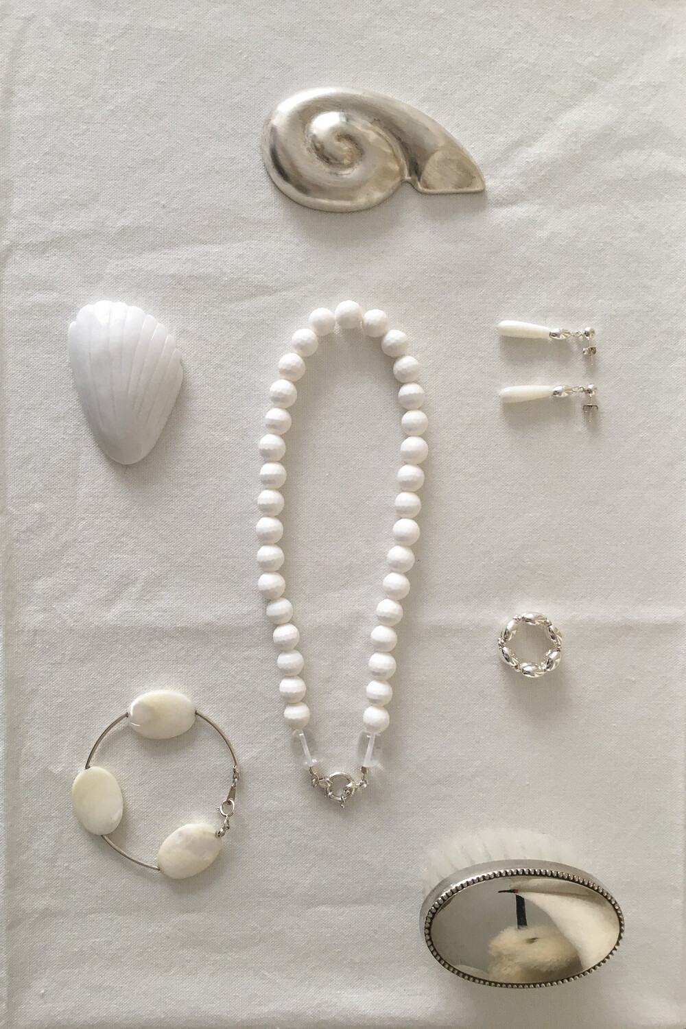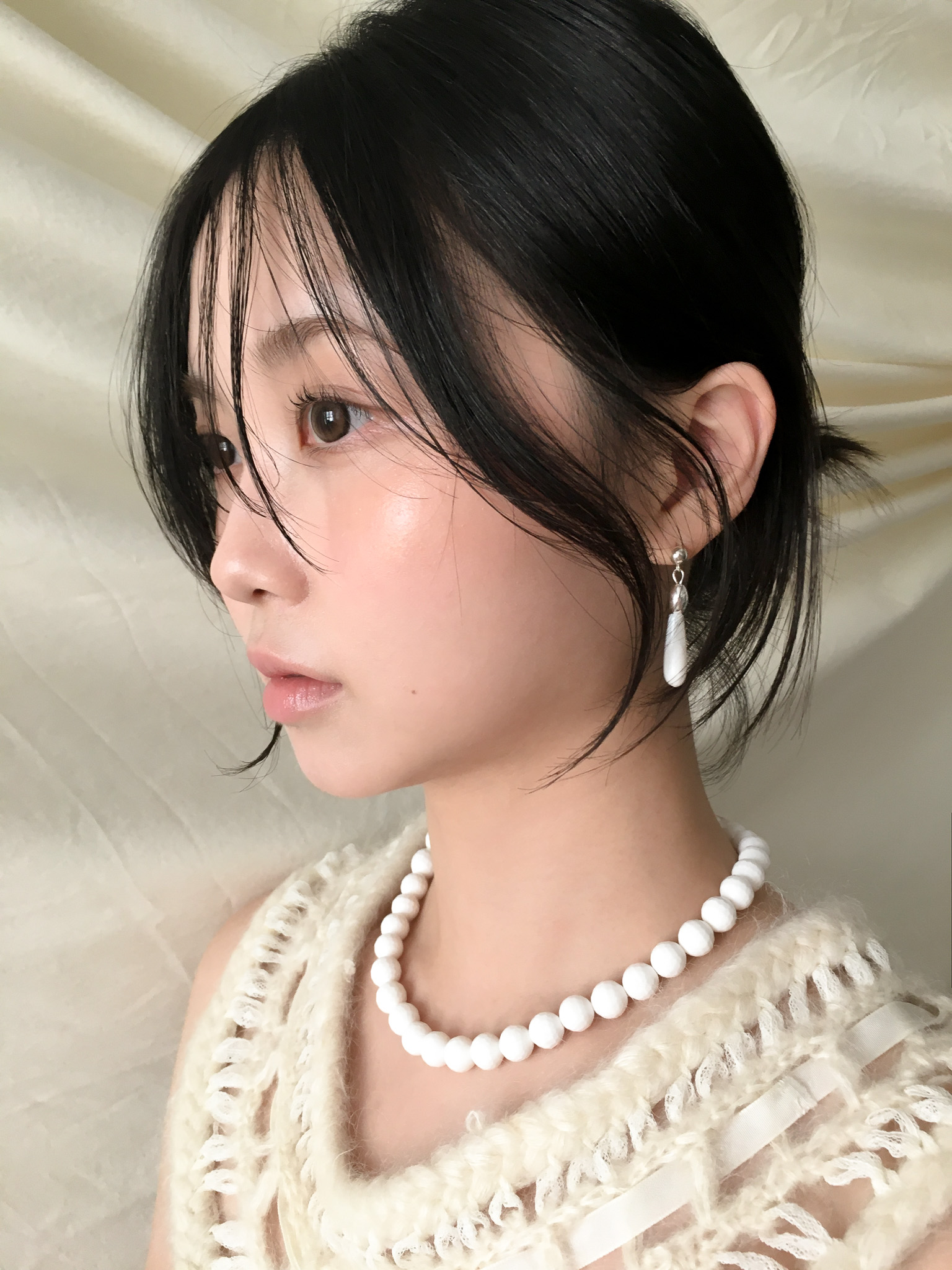순백의 자개로 단정한 실루엣을 완성시키는 페일 네크리스입니다.