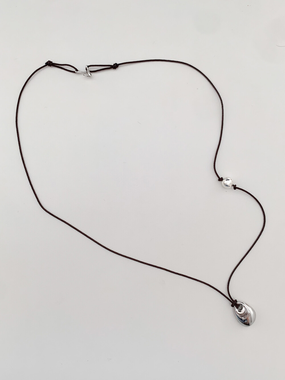 물방울 쉐입의 비정형적인 스틸 펜던트 네크리스. *Brushed Oval necklace 와 비슷한 결을 갖고 있으나, 더욱 간결하고 데일리한 착용이 가능한 롱 네크리스입니다. 비정형 스틸 펜던트에는, 은은하게 마티타 각인 디테일이 숨어있답니다. Sterling Silver Ball 을 라인 중간에 더했습니다. 10mm의 볼드한 사이즈감과 밝게 어우러집니다. 가벼운 무게감으로 멋스러운 데일리 룩에 추천드립니다.