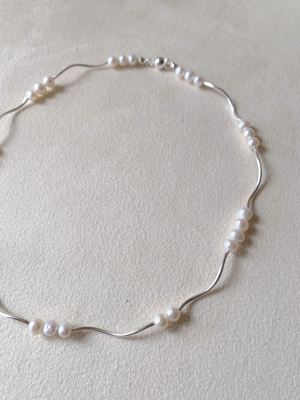 바르고 둥근 형태의 진주를 선별해 리듬감 있게 배치했으며,