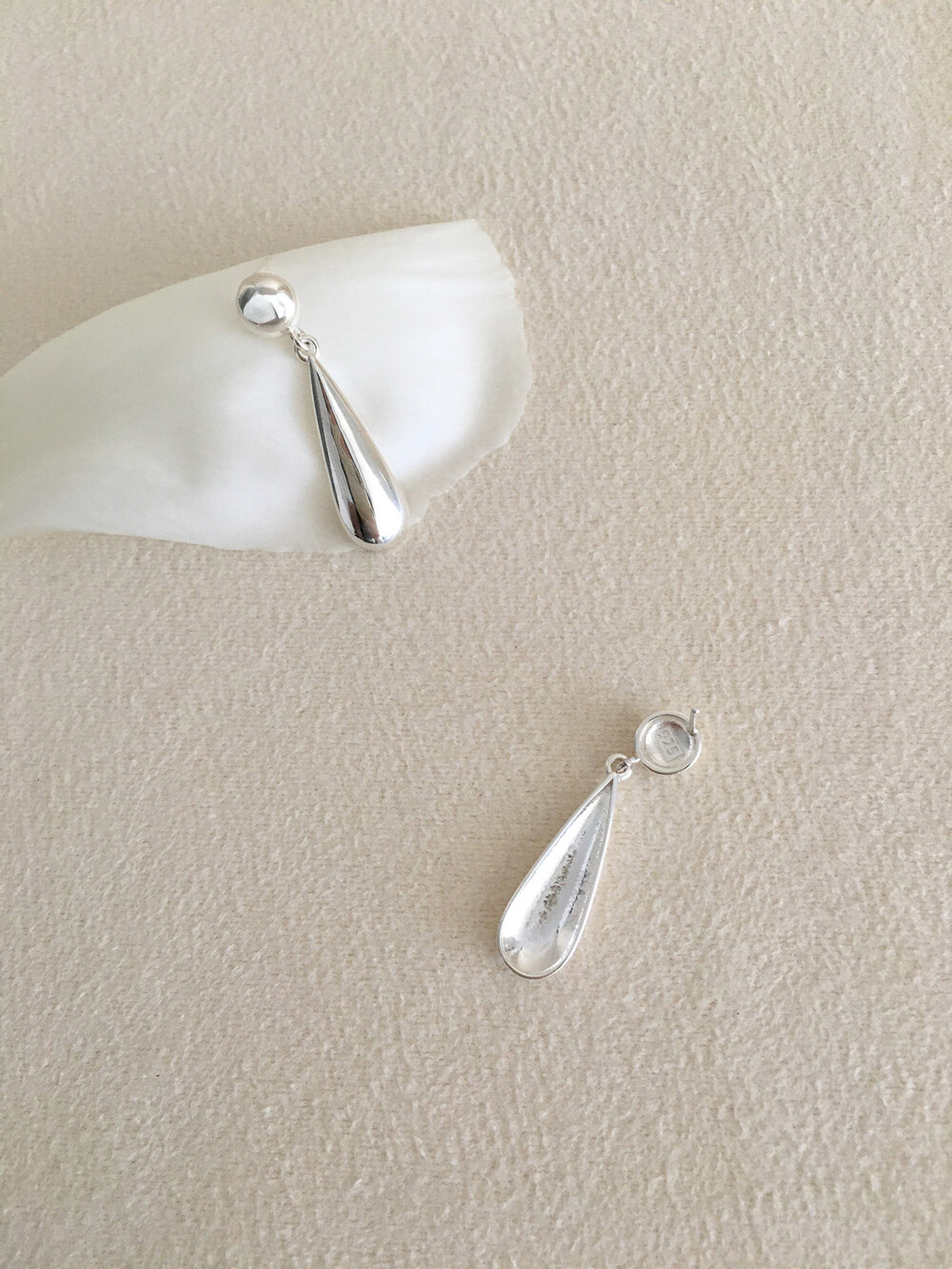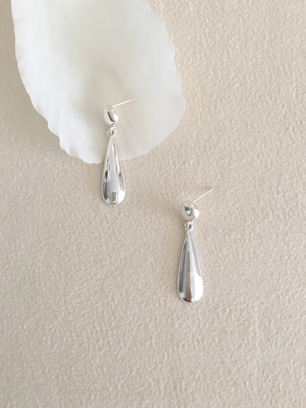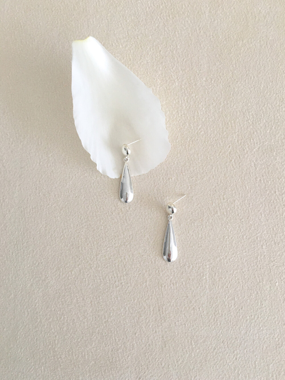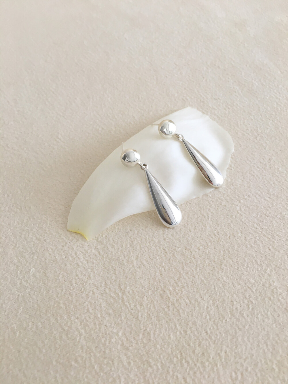 매끄러운 드롭 형태의 실루엣이 돋보이는 실버 이어링입니다. 아름다운 쉐입으로 시선을 끌며,