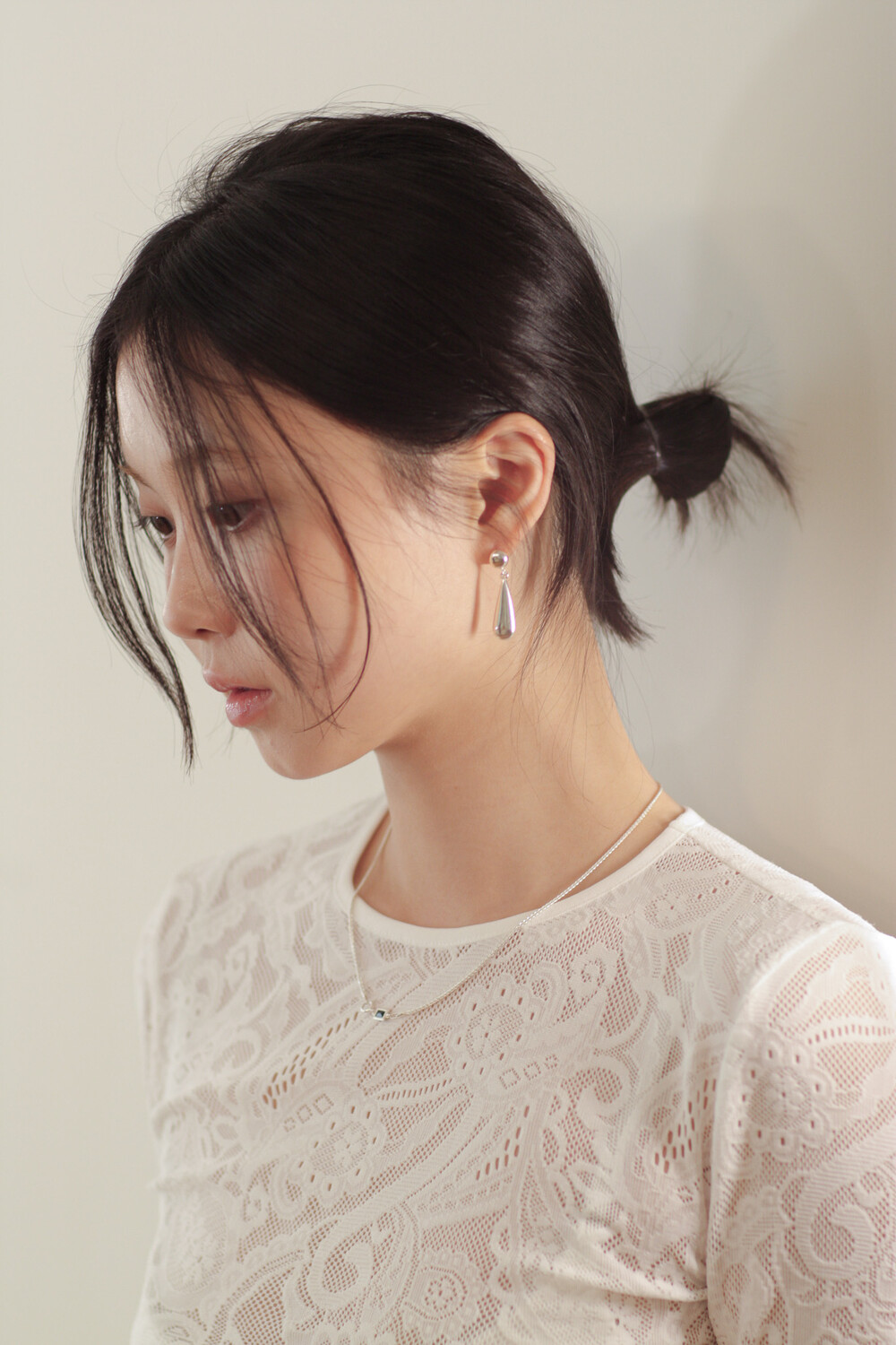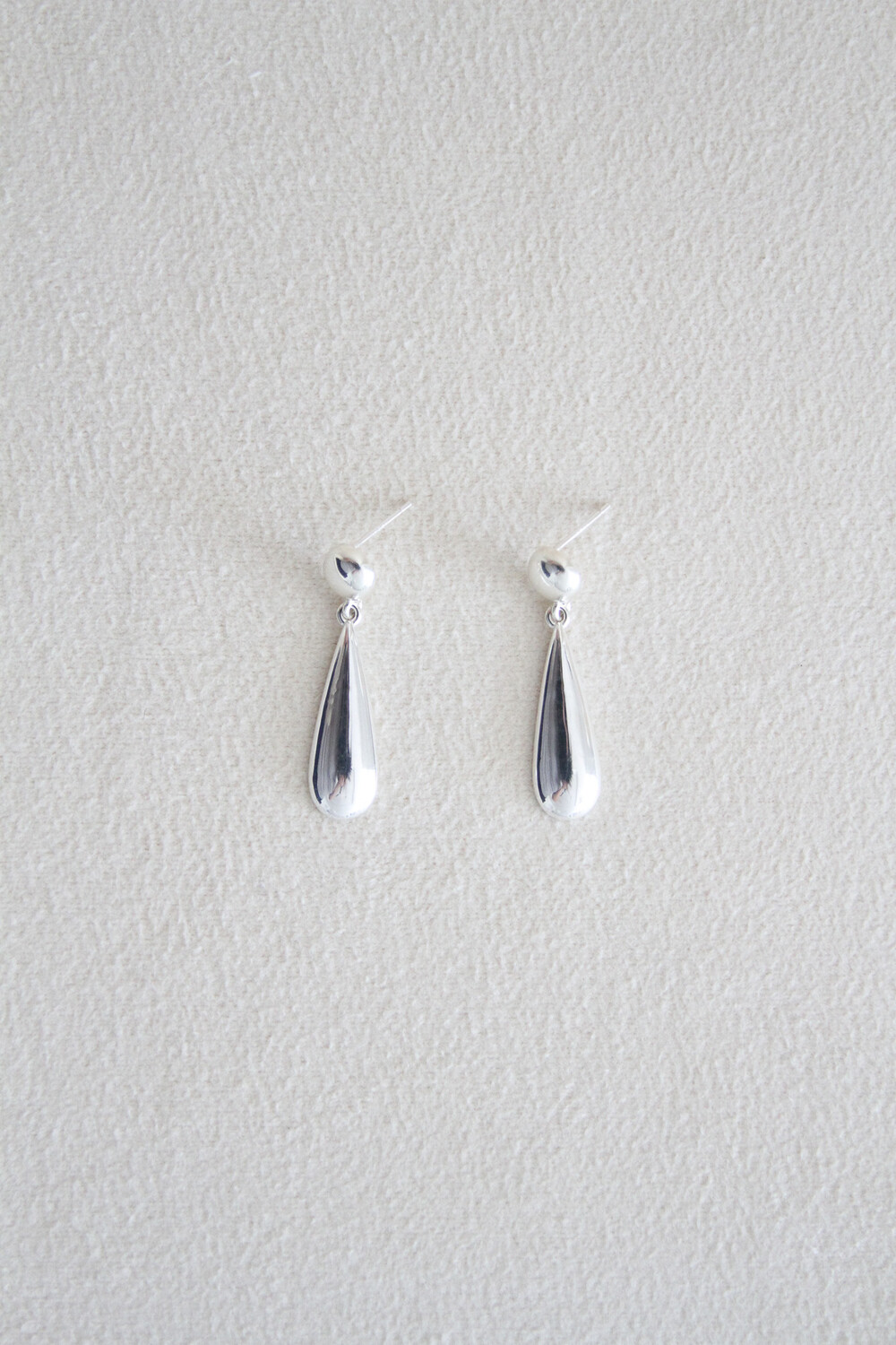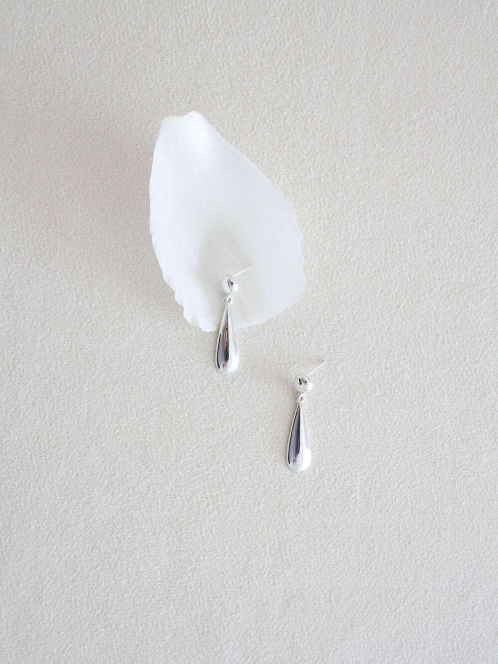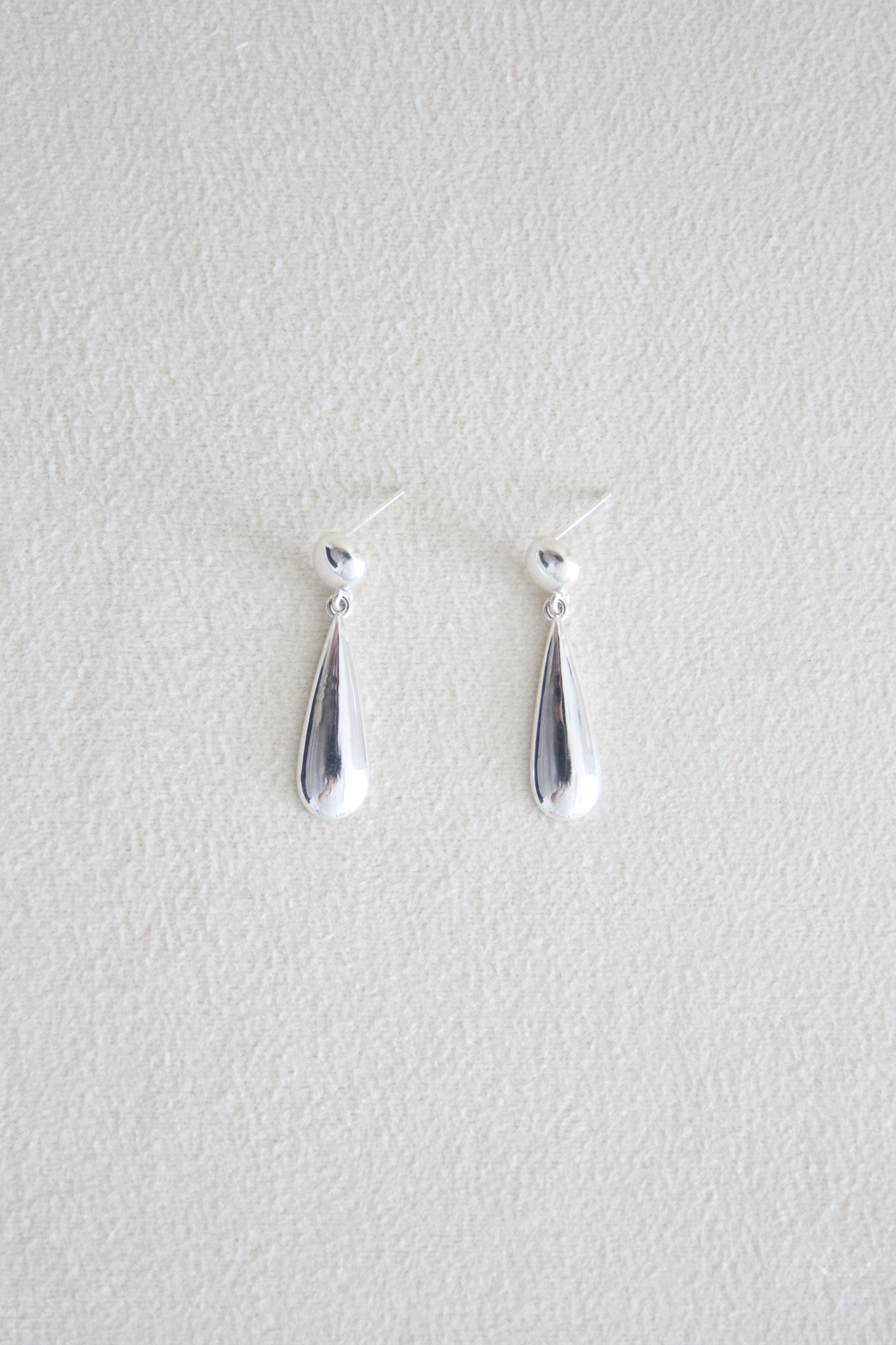매끄러운 드롭 형태의 실루엣이 돋보이는 실버 이어링입니다. 아름다운 쉐입으로 시선을 끌며,