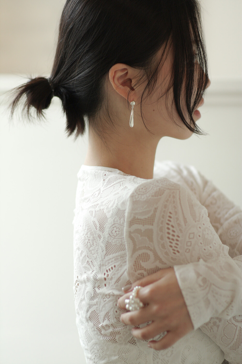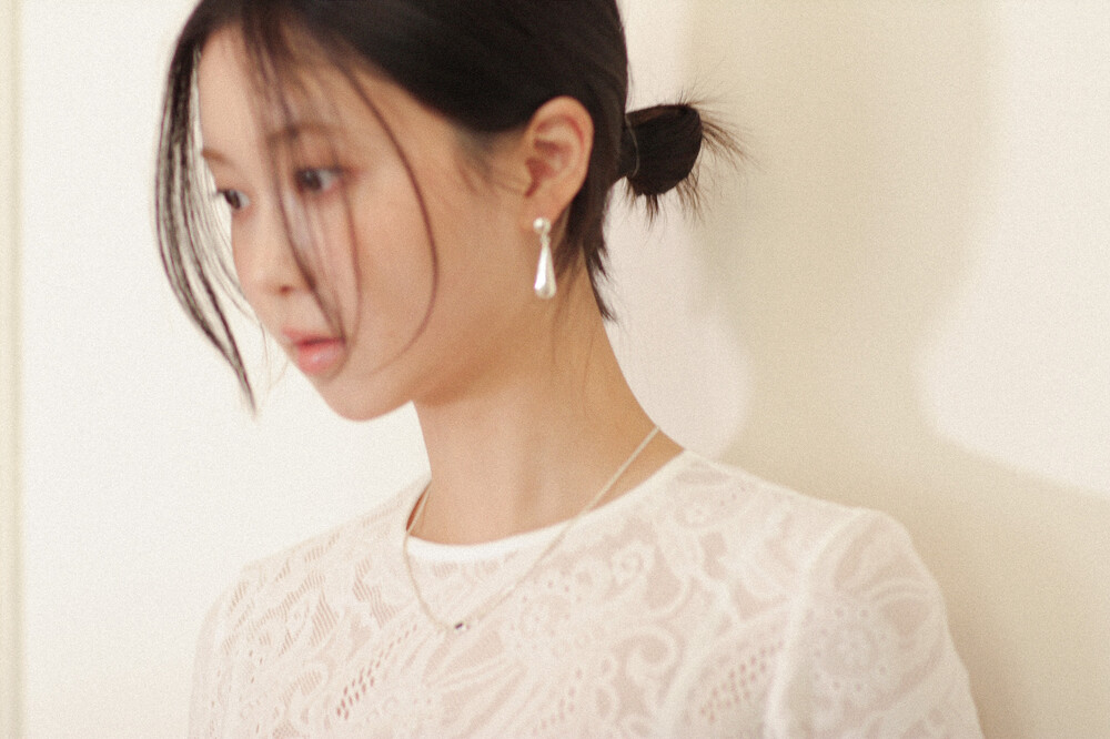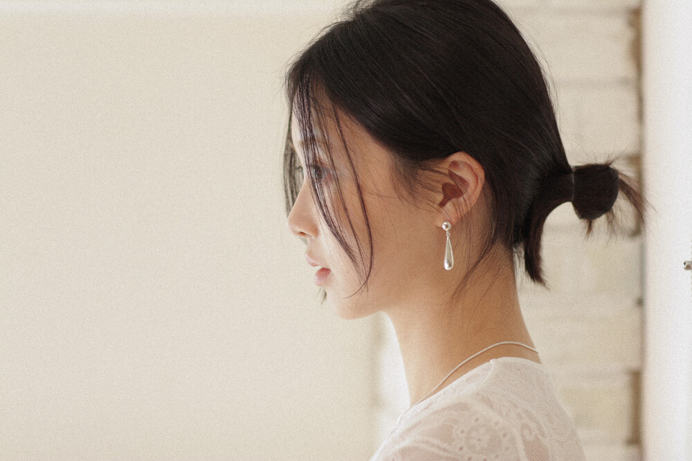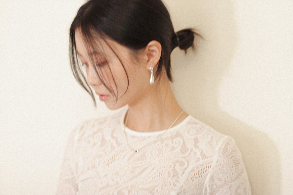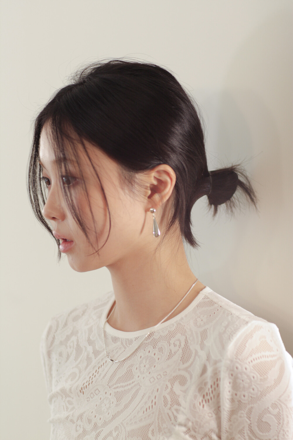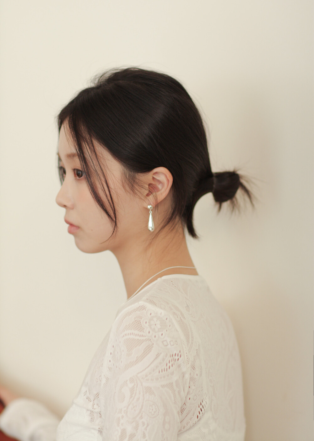 매끄러운 드롭 형태의 실루엣이 돋보이는 실버 이어링입니다. 아름다운 쉐입으로 시선을 끌며,