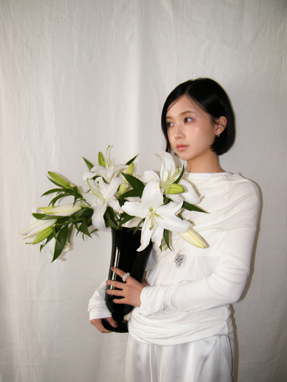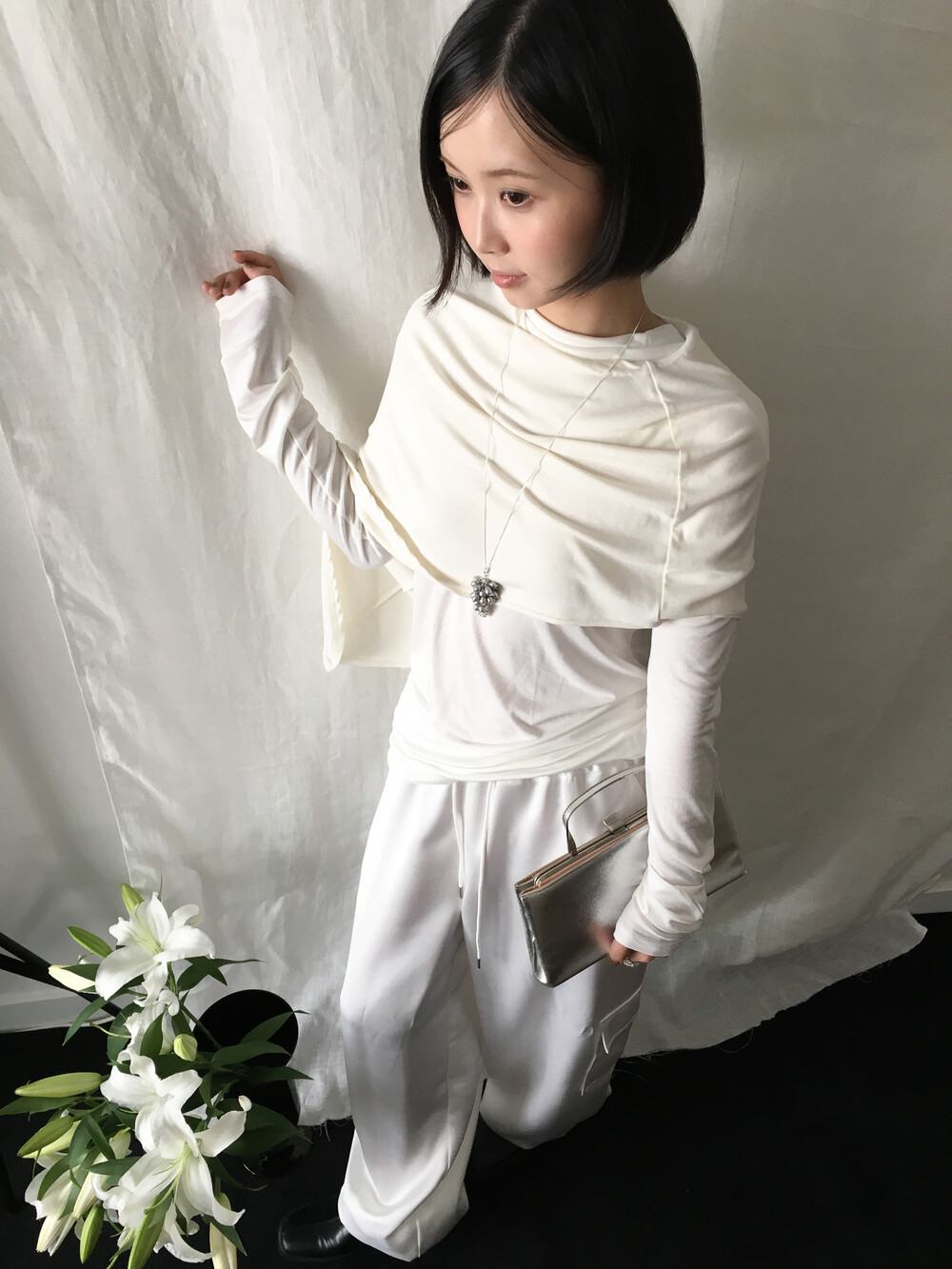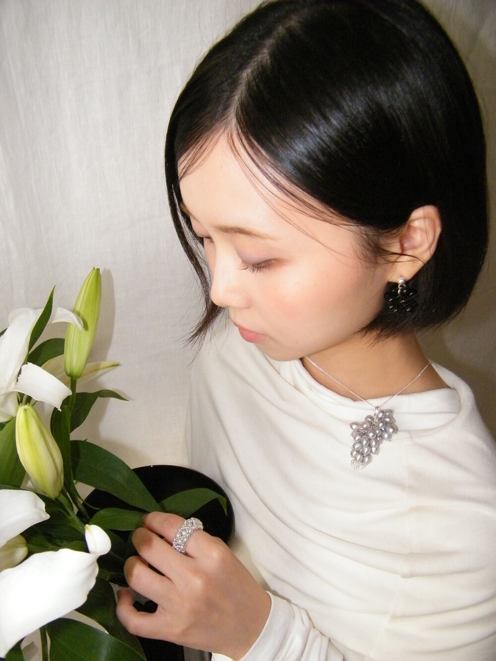 빈티지한 실버 담수 진주를 하나하나 정성스럽게 더했습니다. 이전 버전보다 볼드한 실루엣을 표현하기 위해, 보다 풍성하게 담수 진주를 배치하여 디벨롭했습니다.