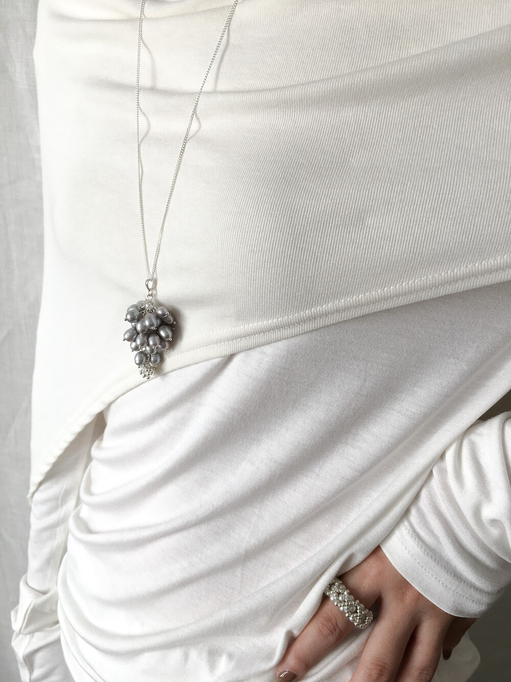material - freshwater pearl - sterling silver(925) chain - sterling silver(925) ball
