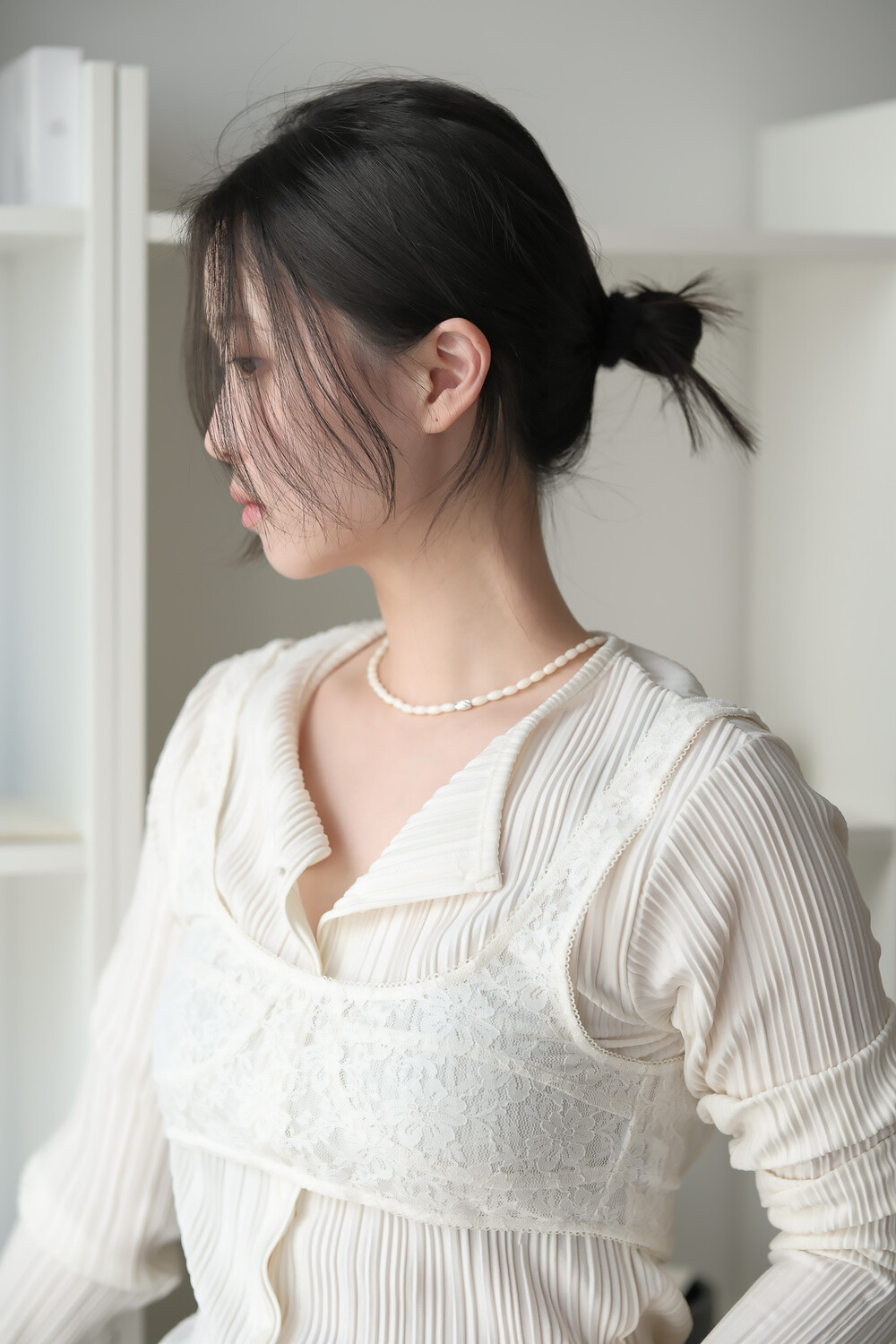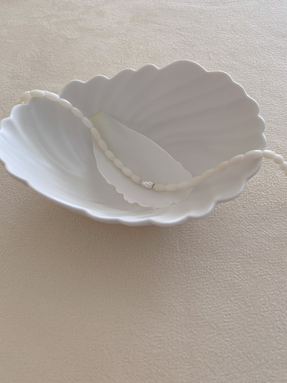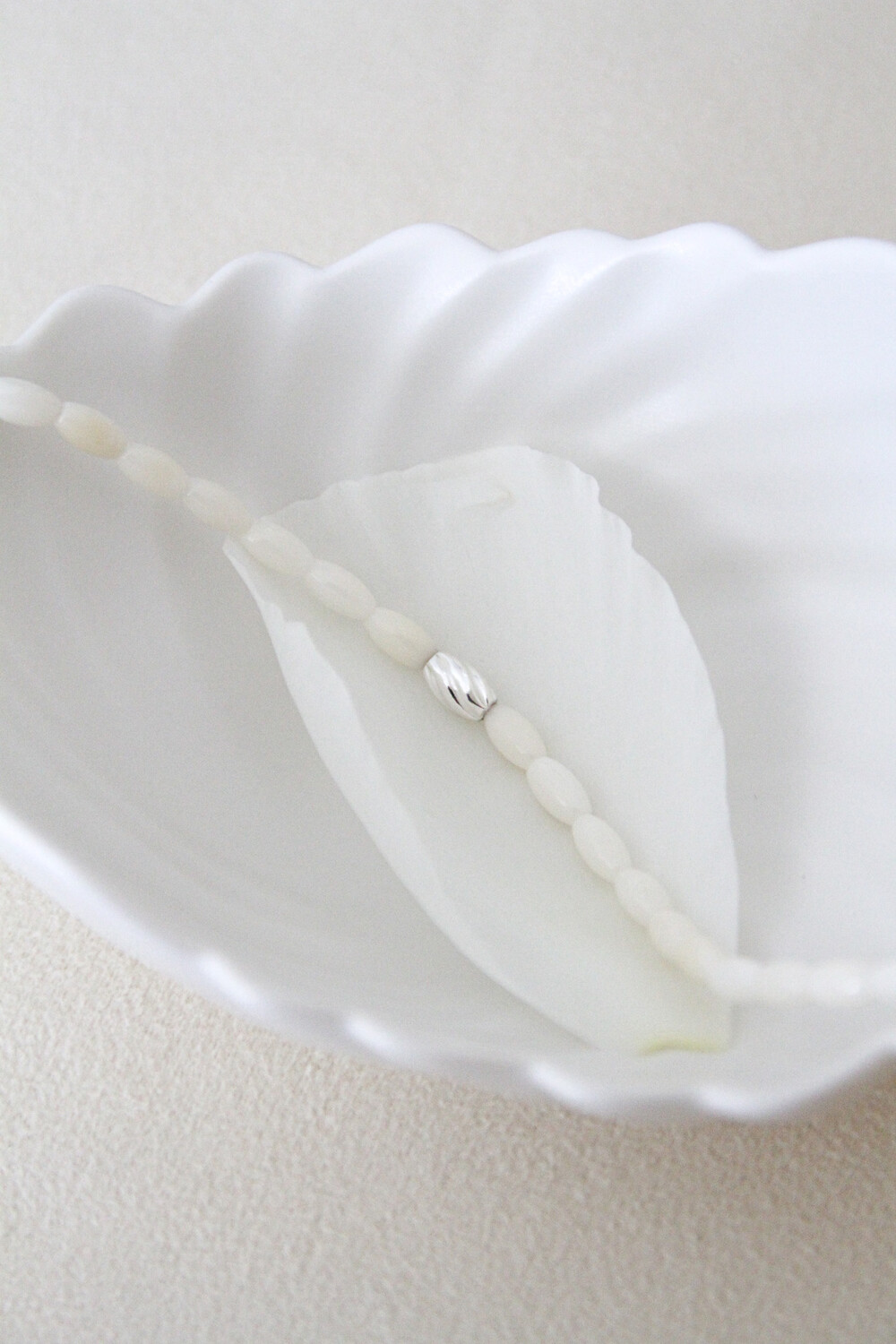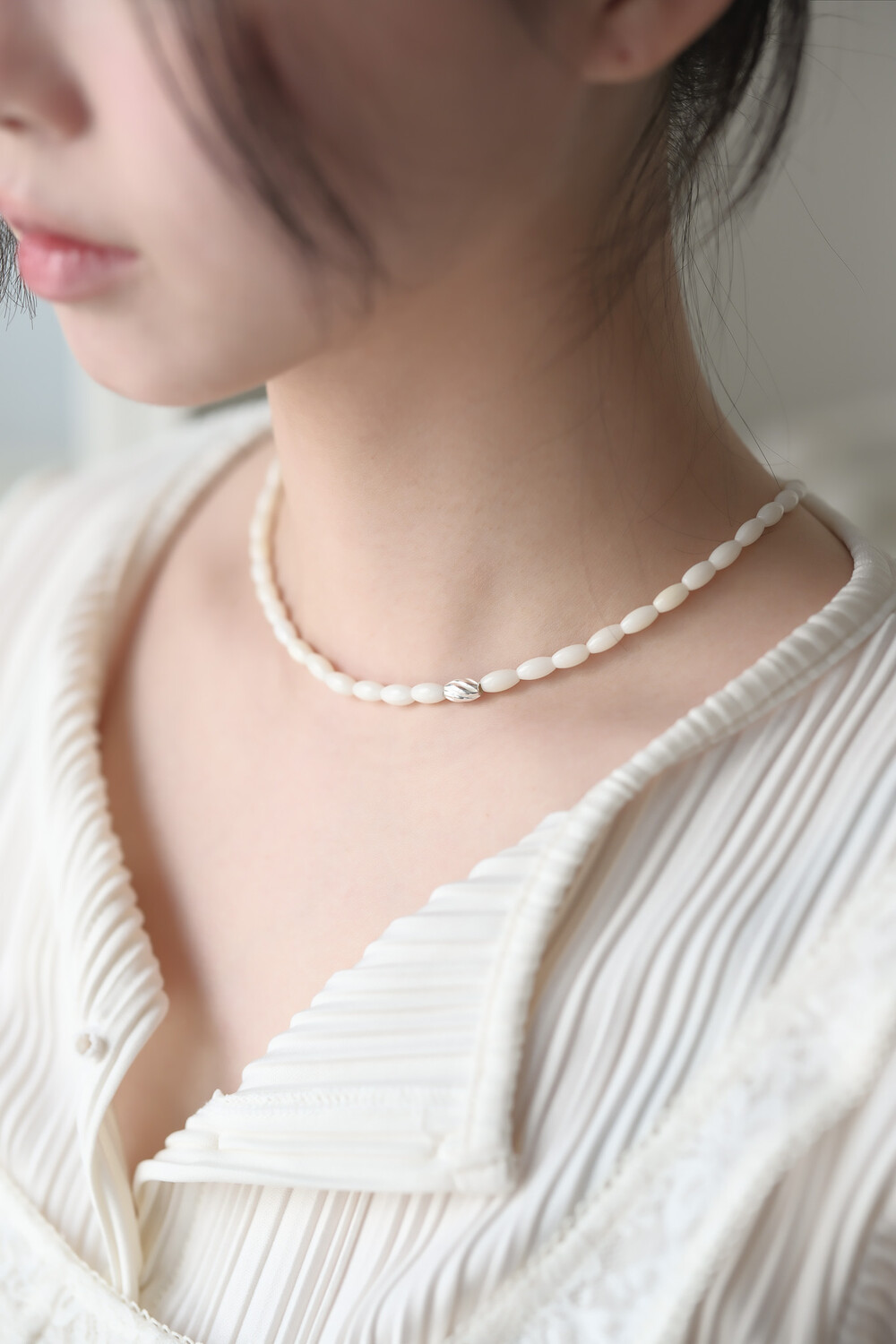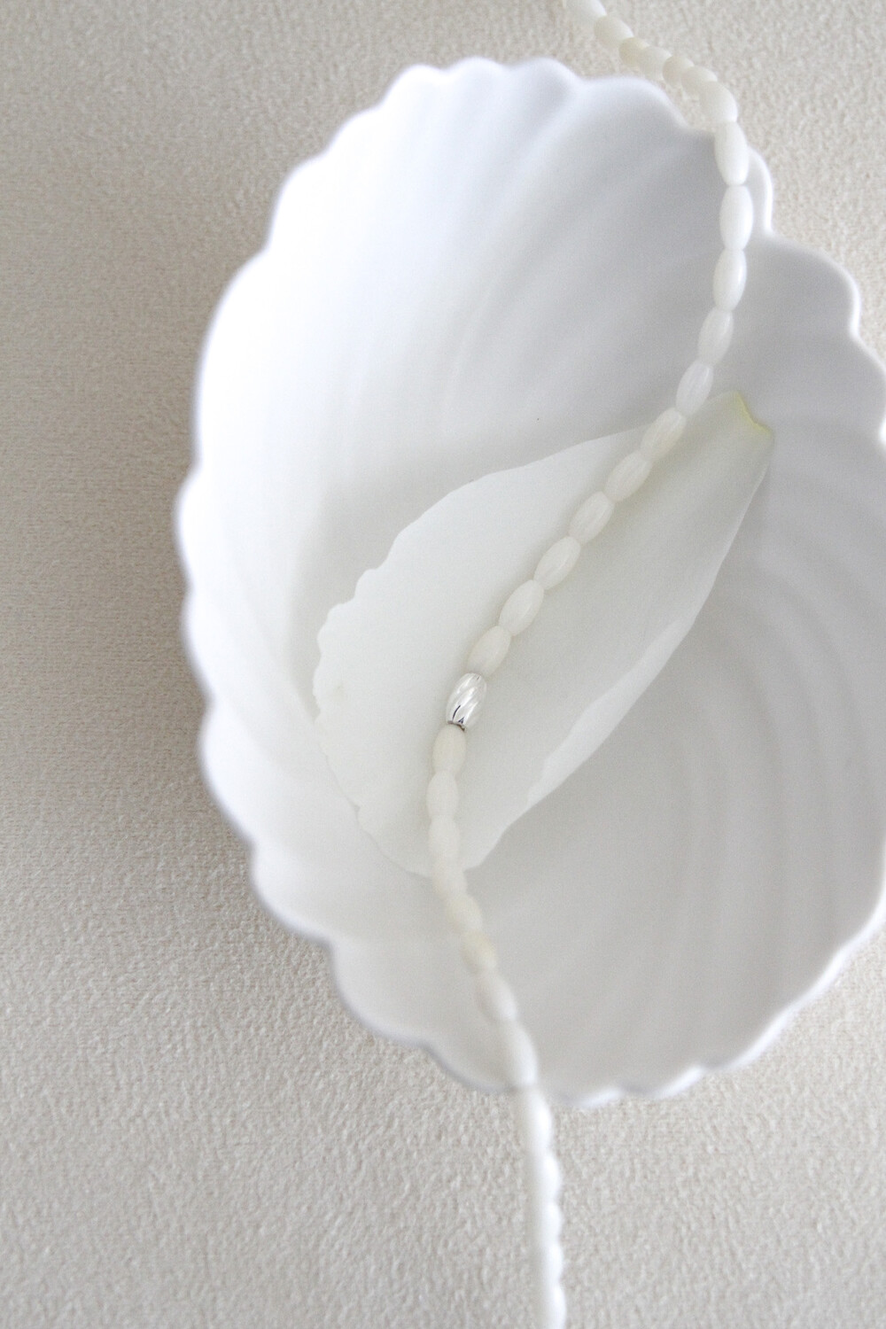 곡선의 표면감이 드러나는 물결 패턴의 실버 볼 디테일을 더해 은은한 존재감을 더했습니다. 마그넷 클로징으로 간결하게 착용하실 수 있으며, 상아빛의 코랄 네크리스로 따뜻한 포인트를 더해보세요.