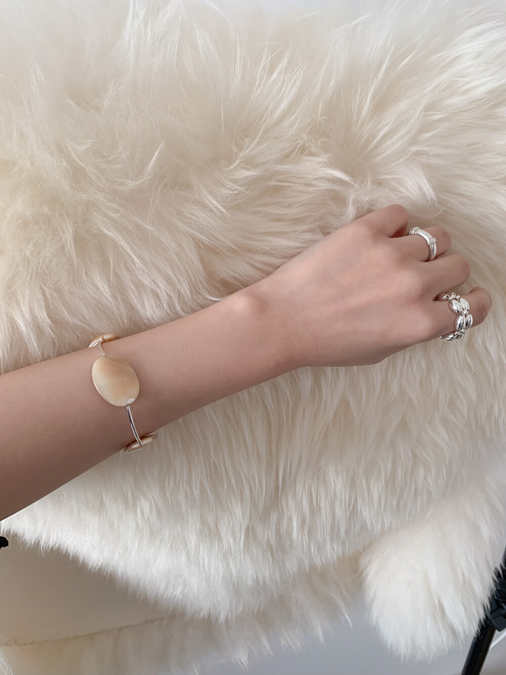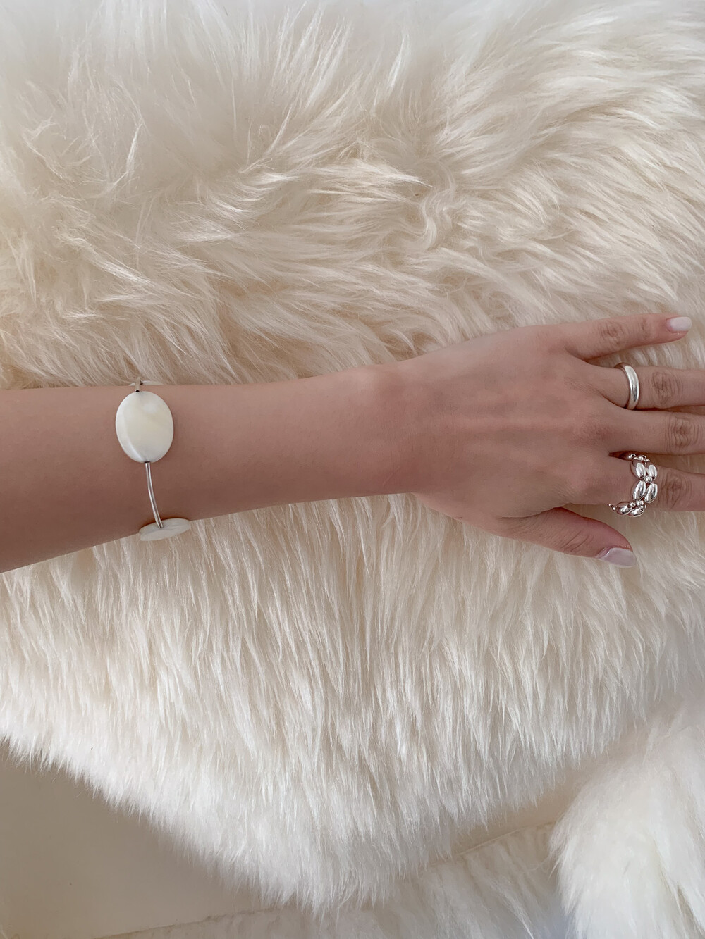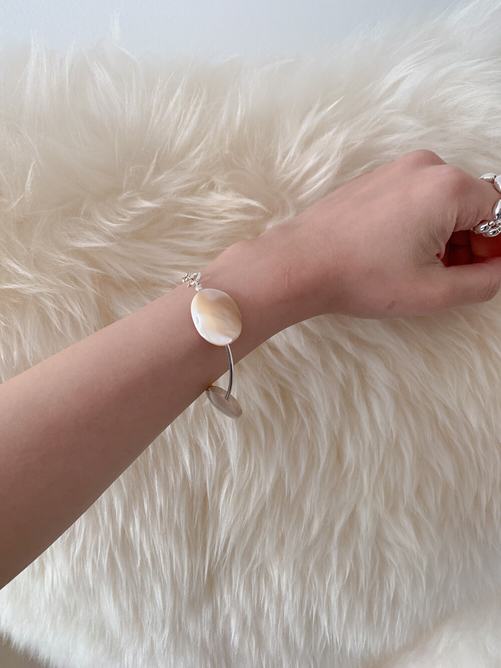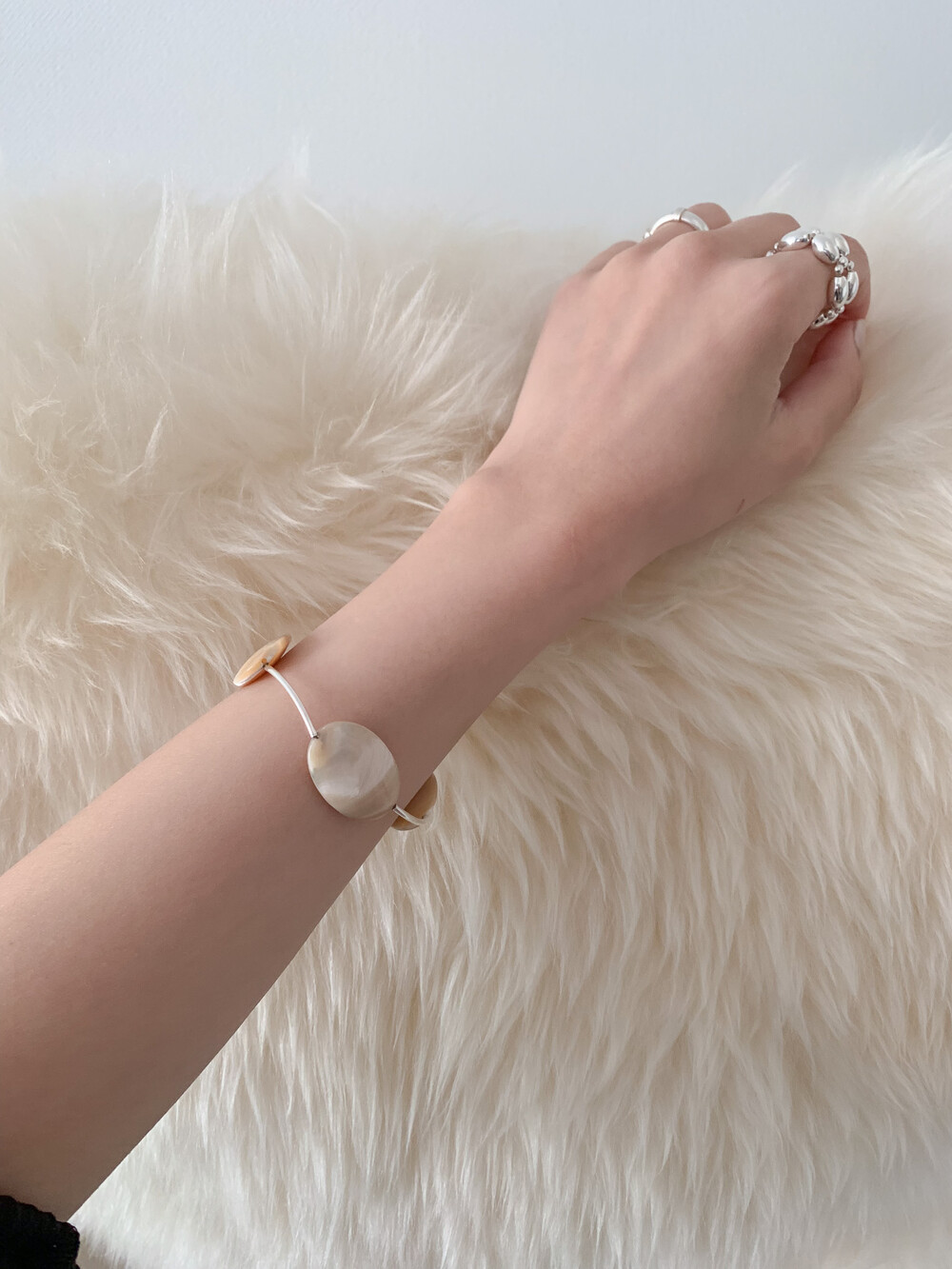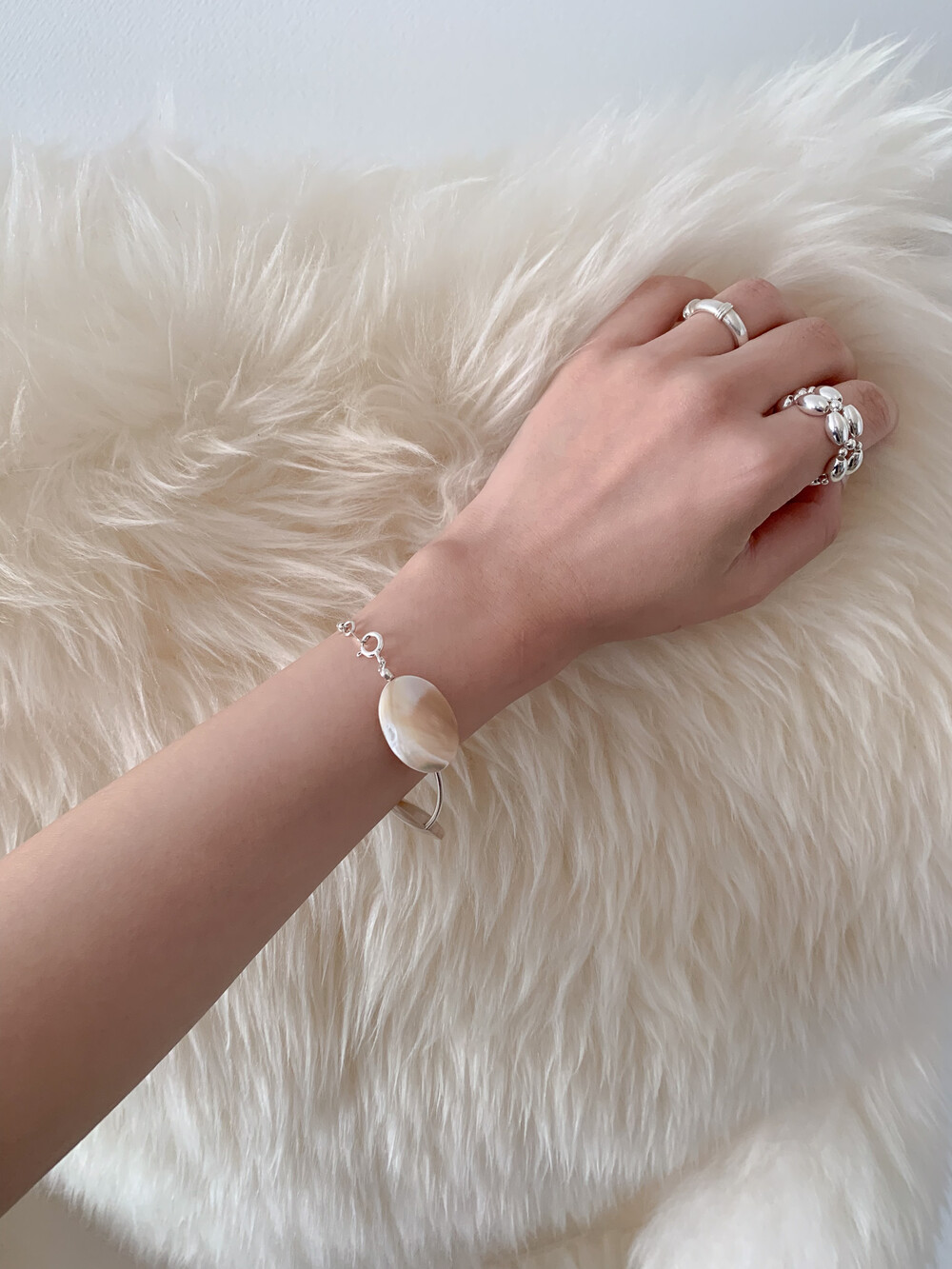 Mother of Pearl 로 구성된 담백하지만 소재가 주는 디테일이 아름다운 브레이슬릿 입니다.