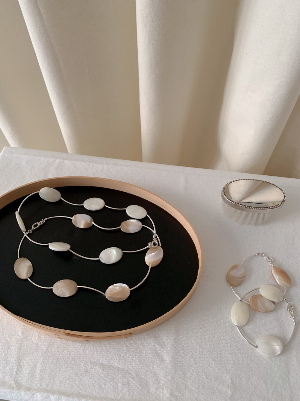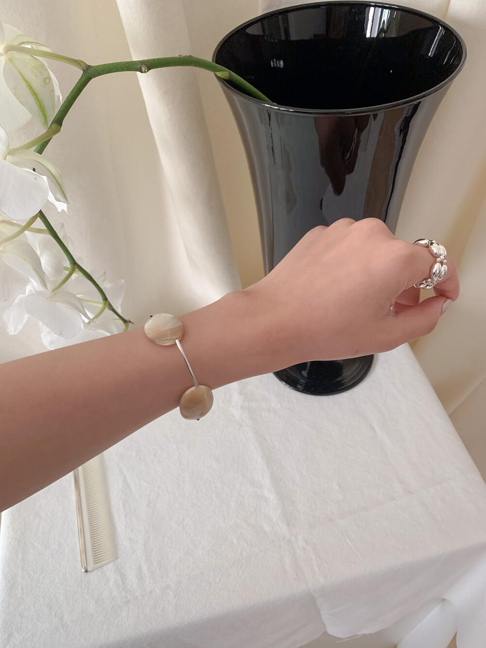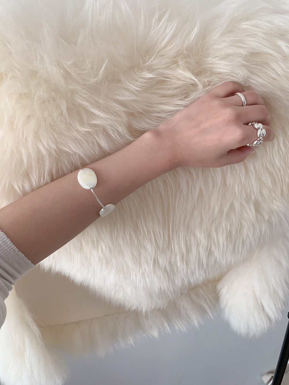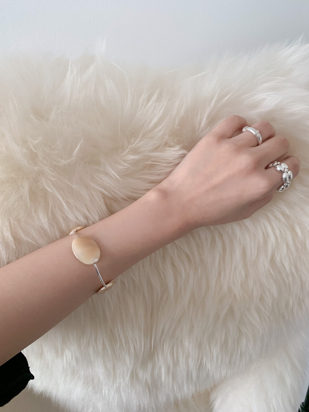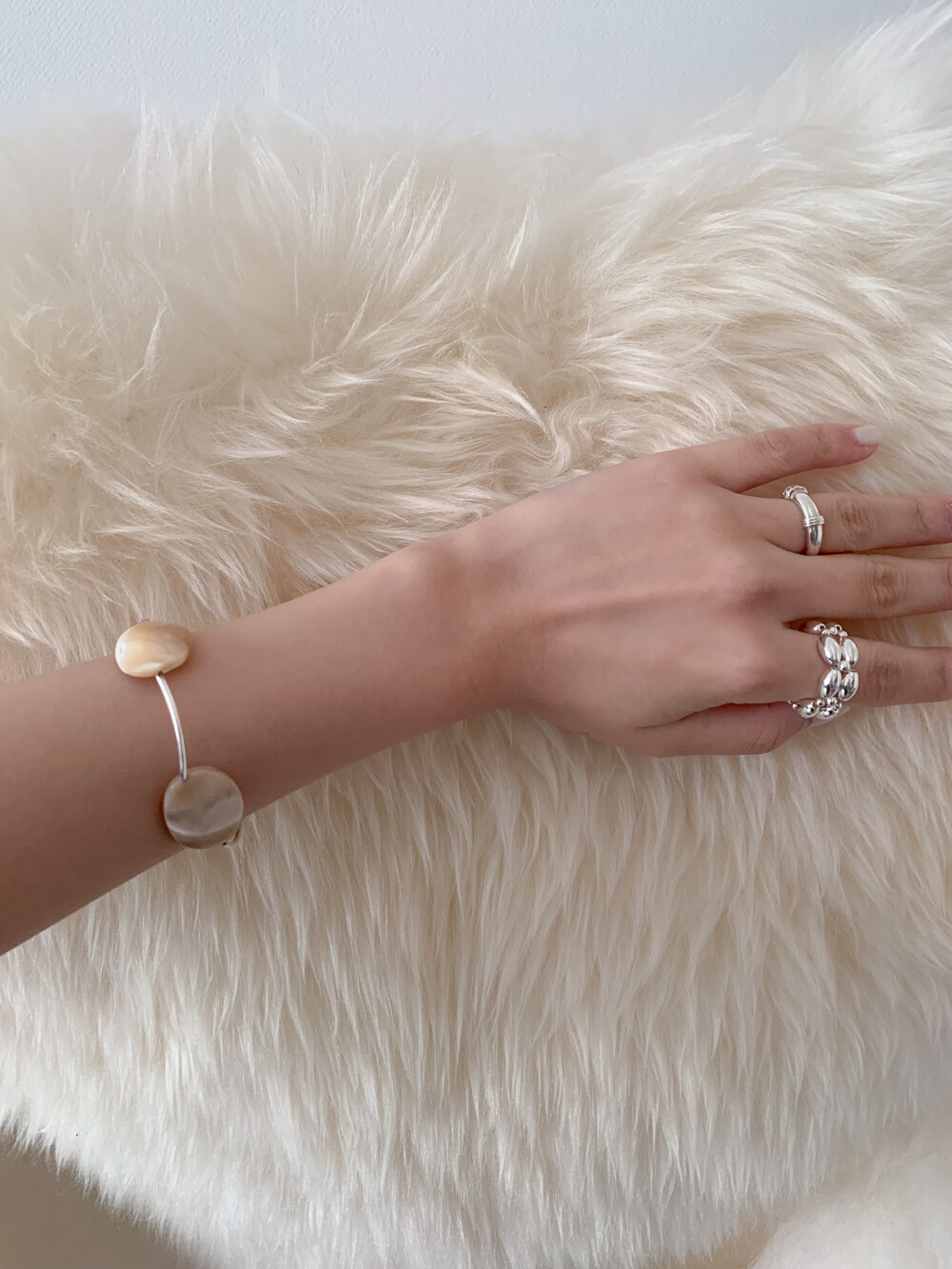 Mother of Pearl 로 구성된 담백하지만 소재가 주는 디테일이 아름다운 브레이슬릿 입니다.