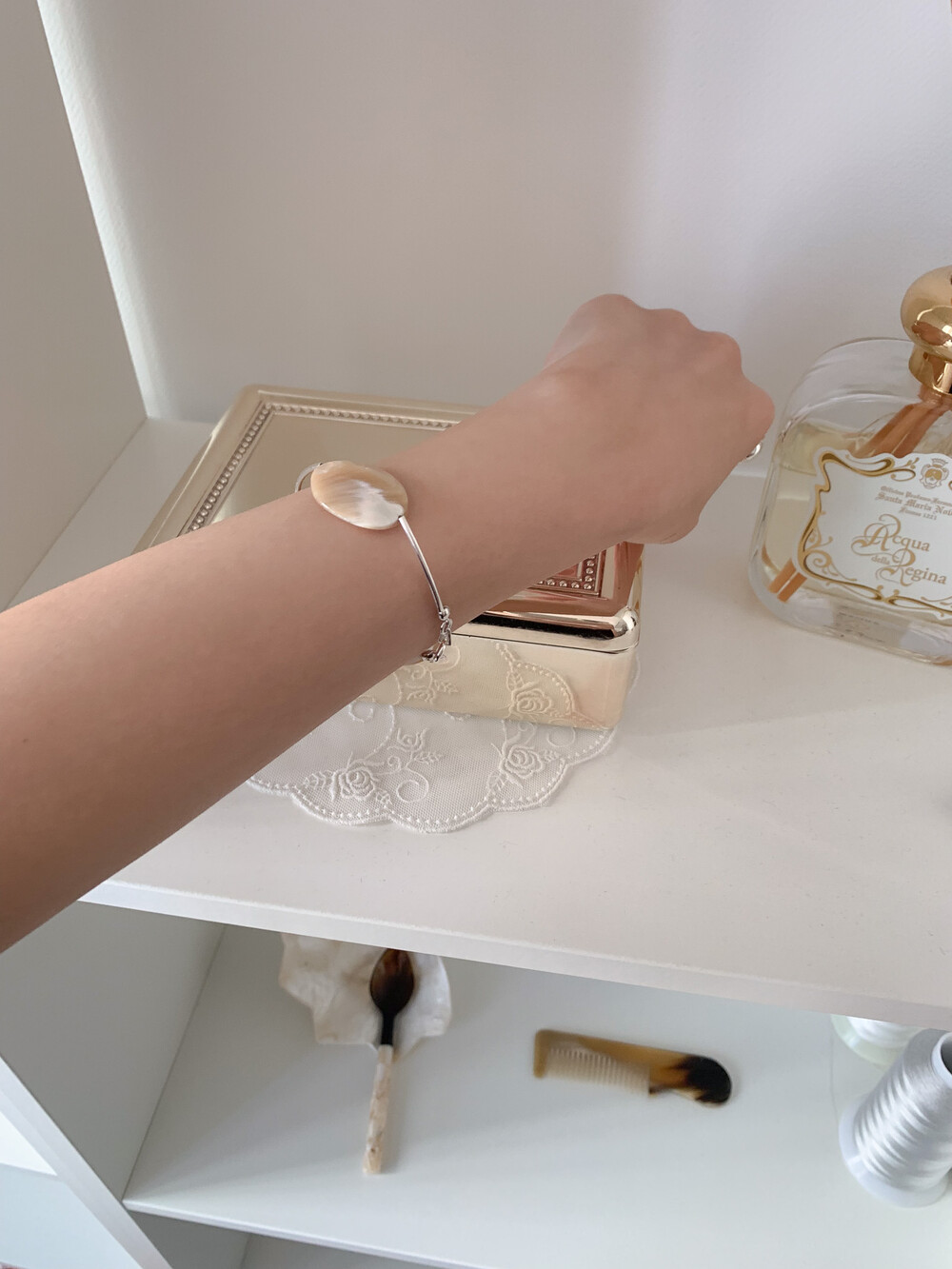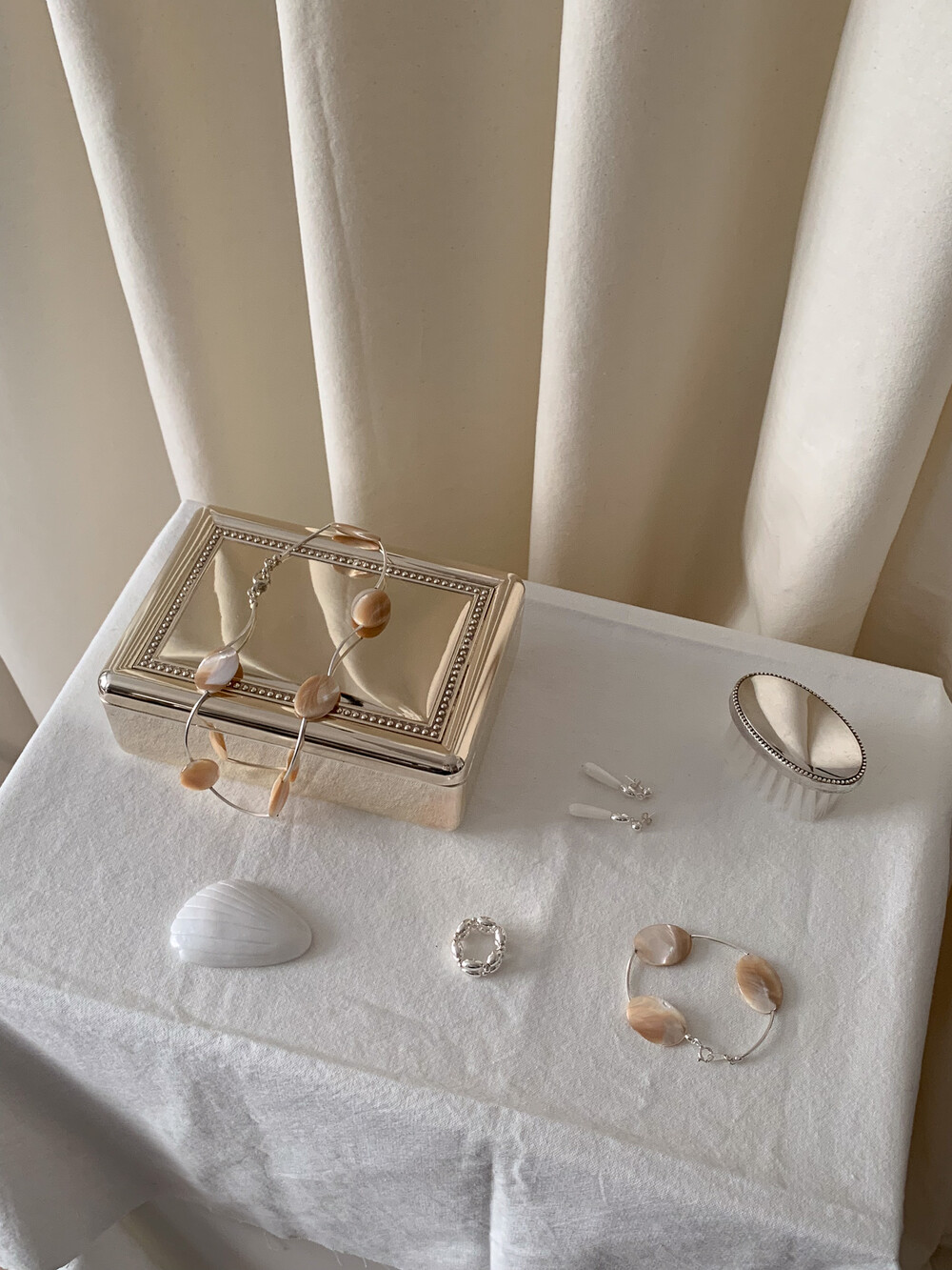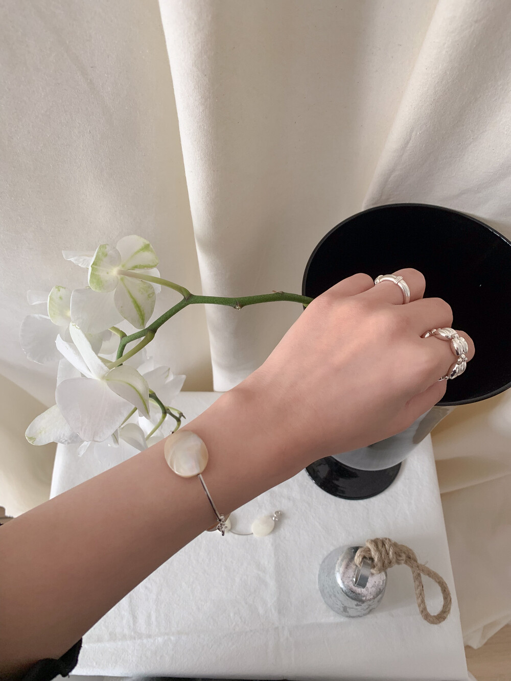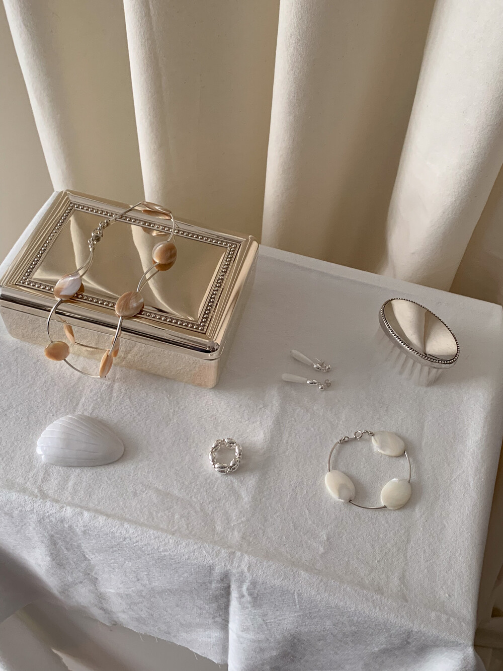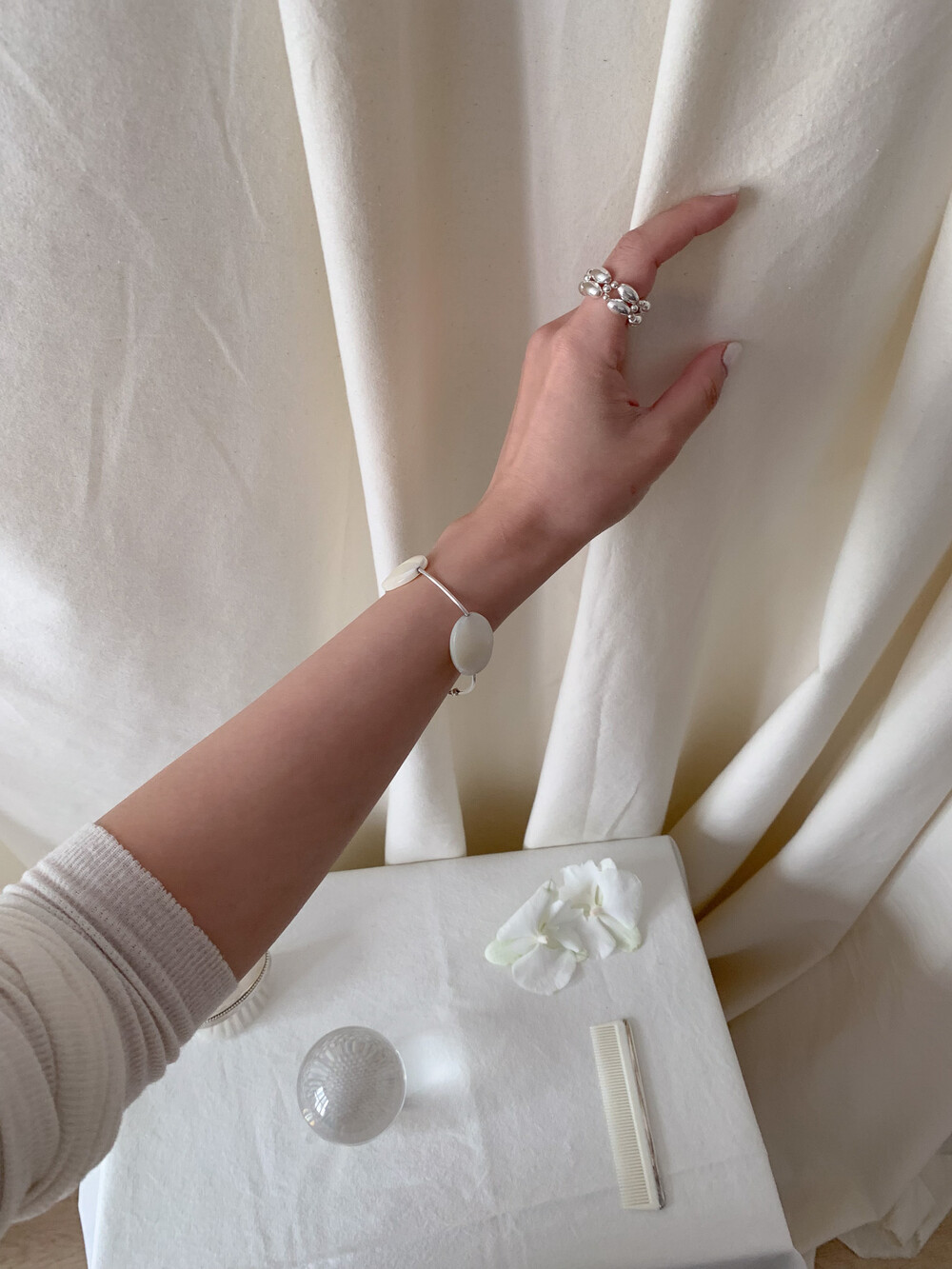 Mother of Pearl 로 구성된 담백하지만 소재가 주는 디테일이 아름다운 브레이슬릿 입니다.