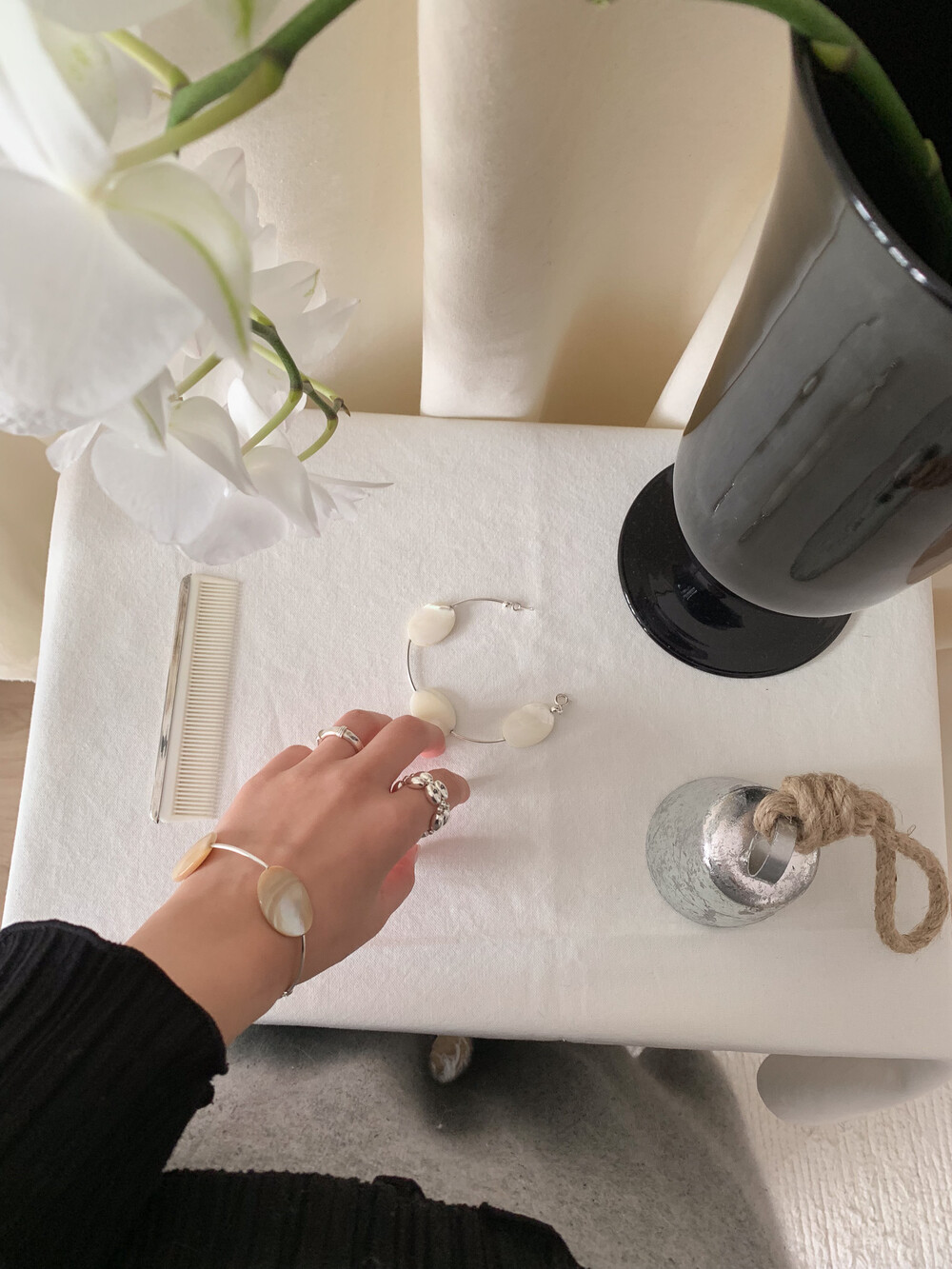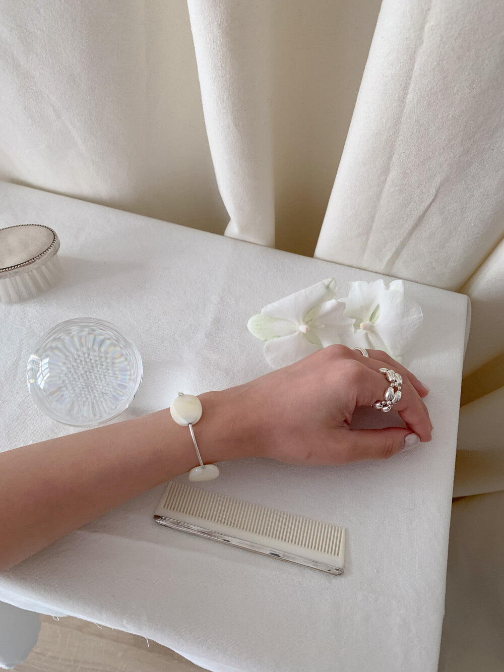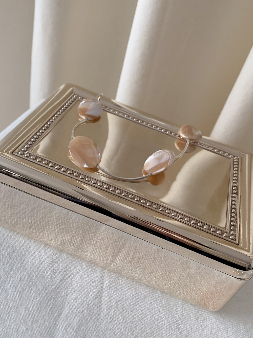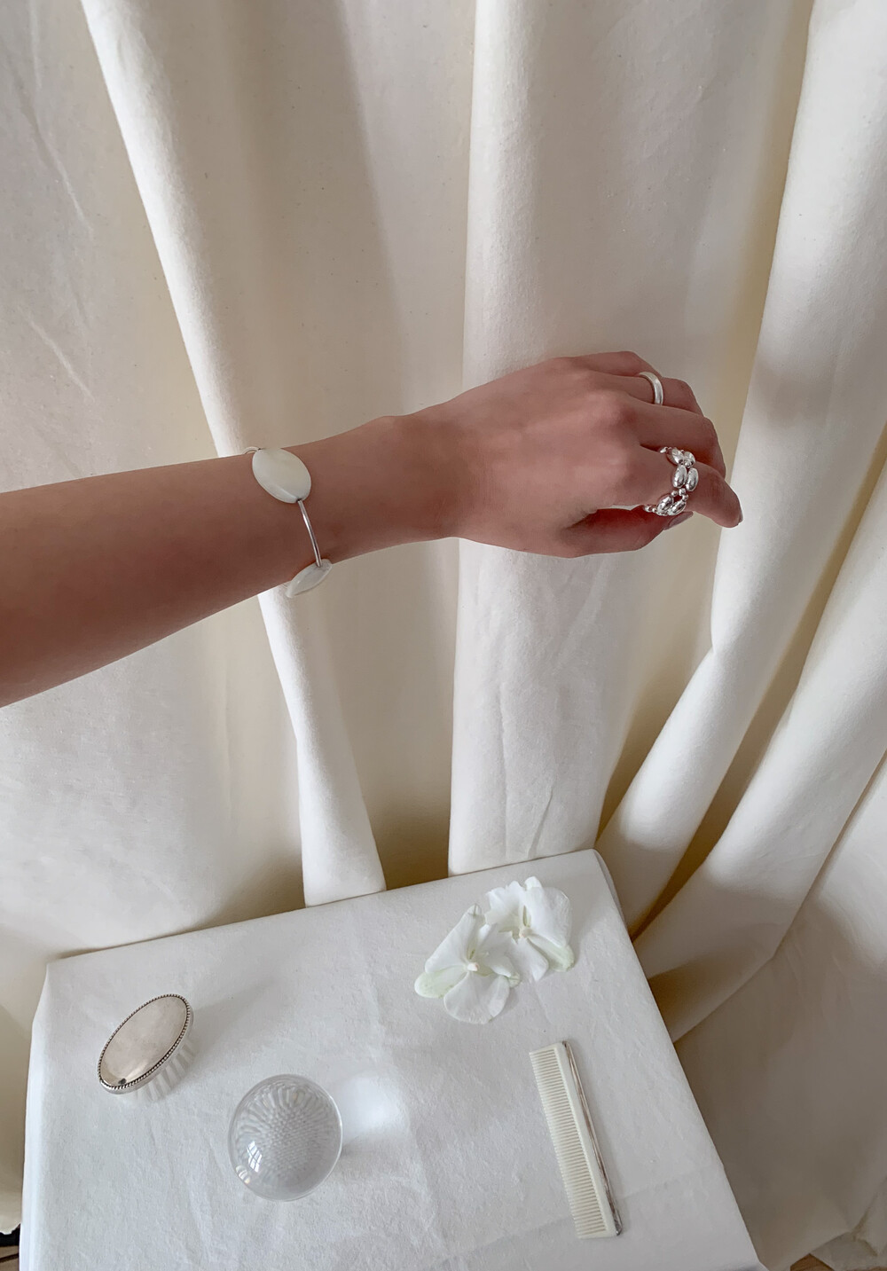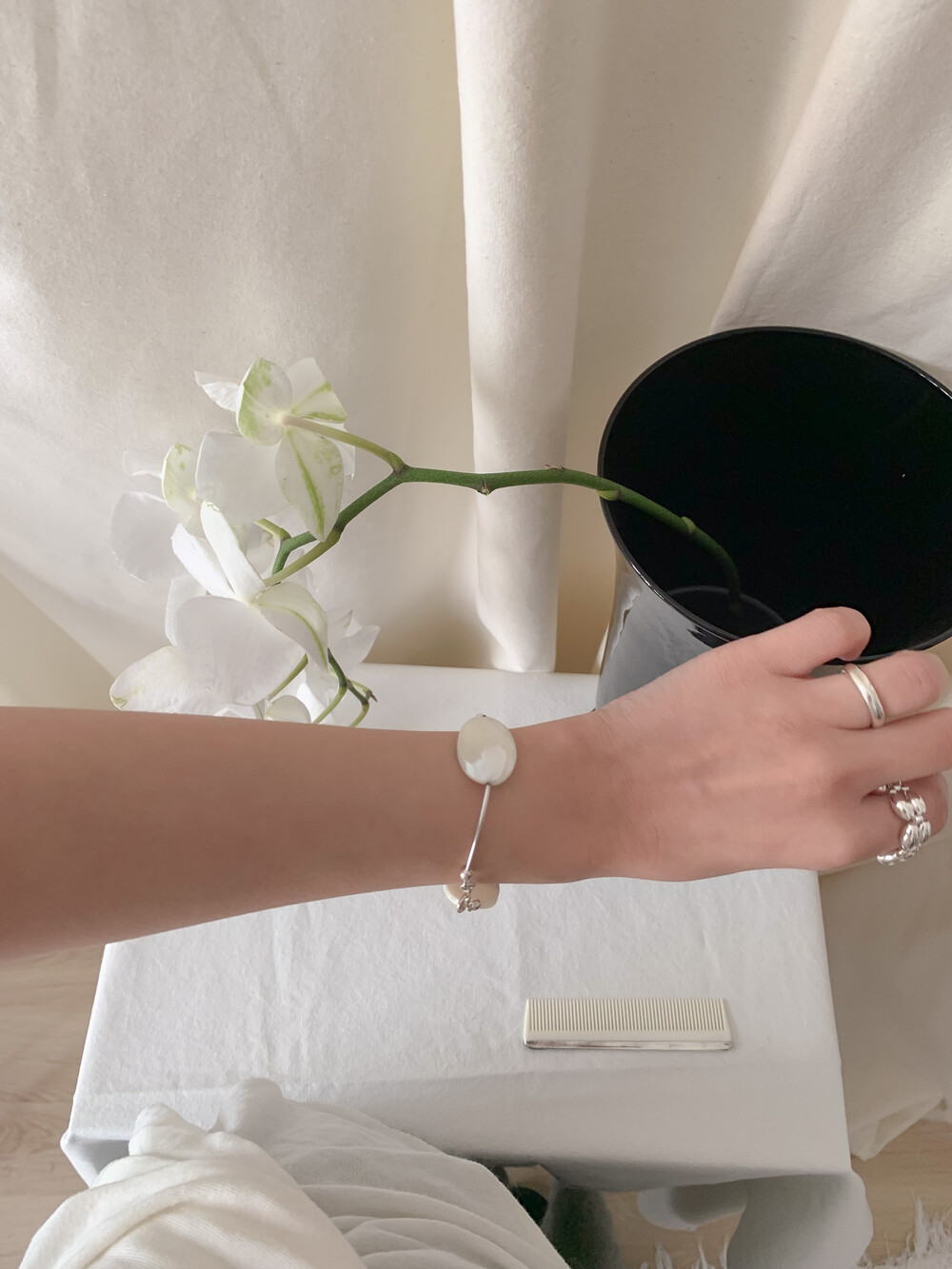 Mother of Pearl 로 구성된 담백하지만 소재가 주는 디테일이 아름다운 브레이슬릿 입니다.