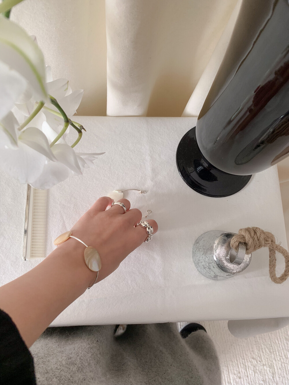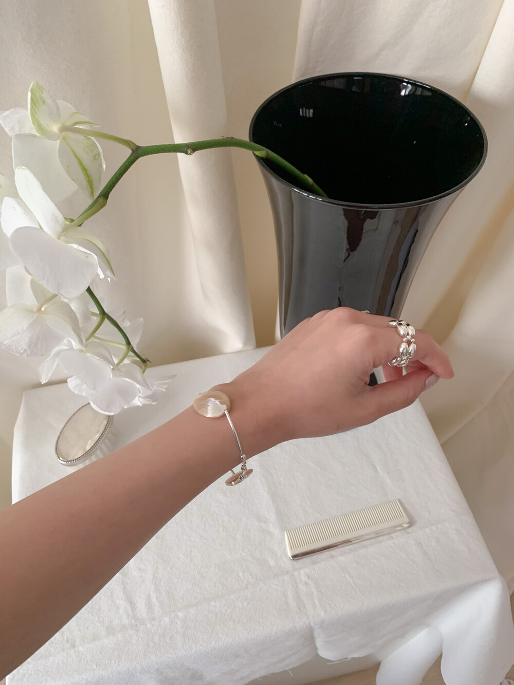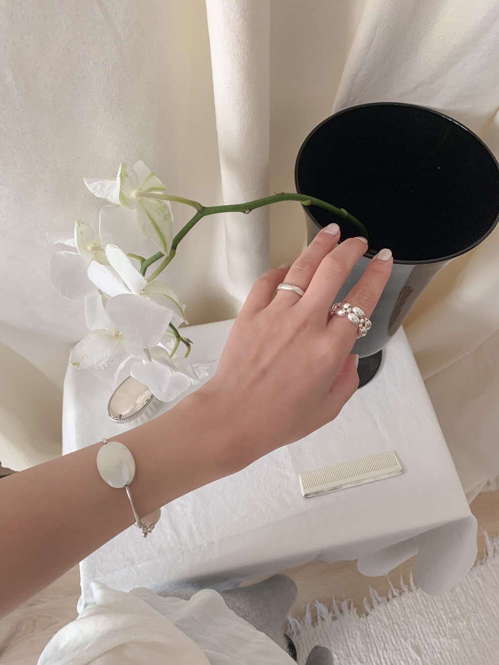유선형의 곡선 실버 라인으로, 자개의 형태감을 그대로 살려주어 아름답고 독특한 포인트가 됩니다.