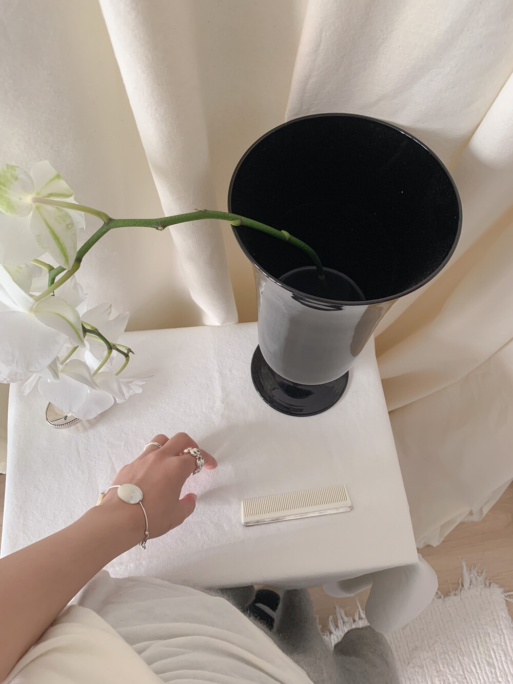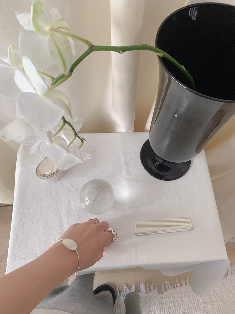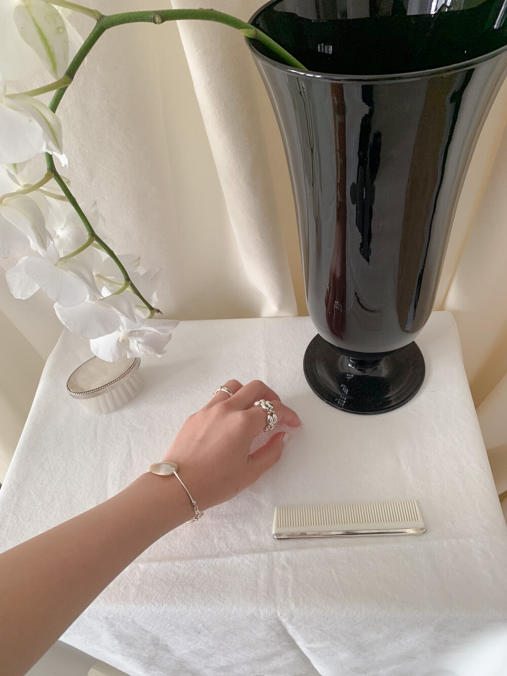유선형의 곡선 실버 라인으로, 자개의 형태감을 그대로 살려주어 아름답고 독특한 포인트가 됩니다.