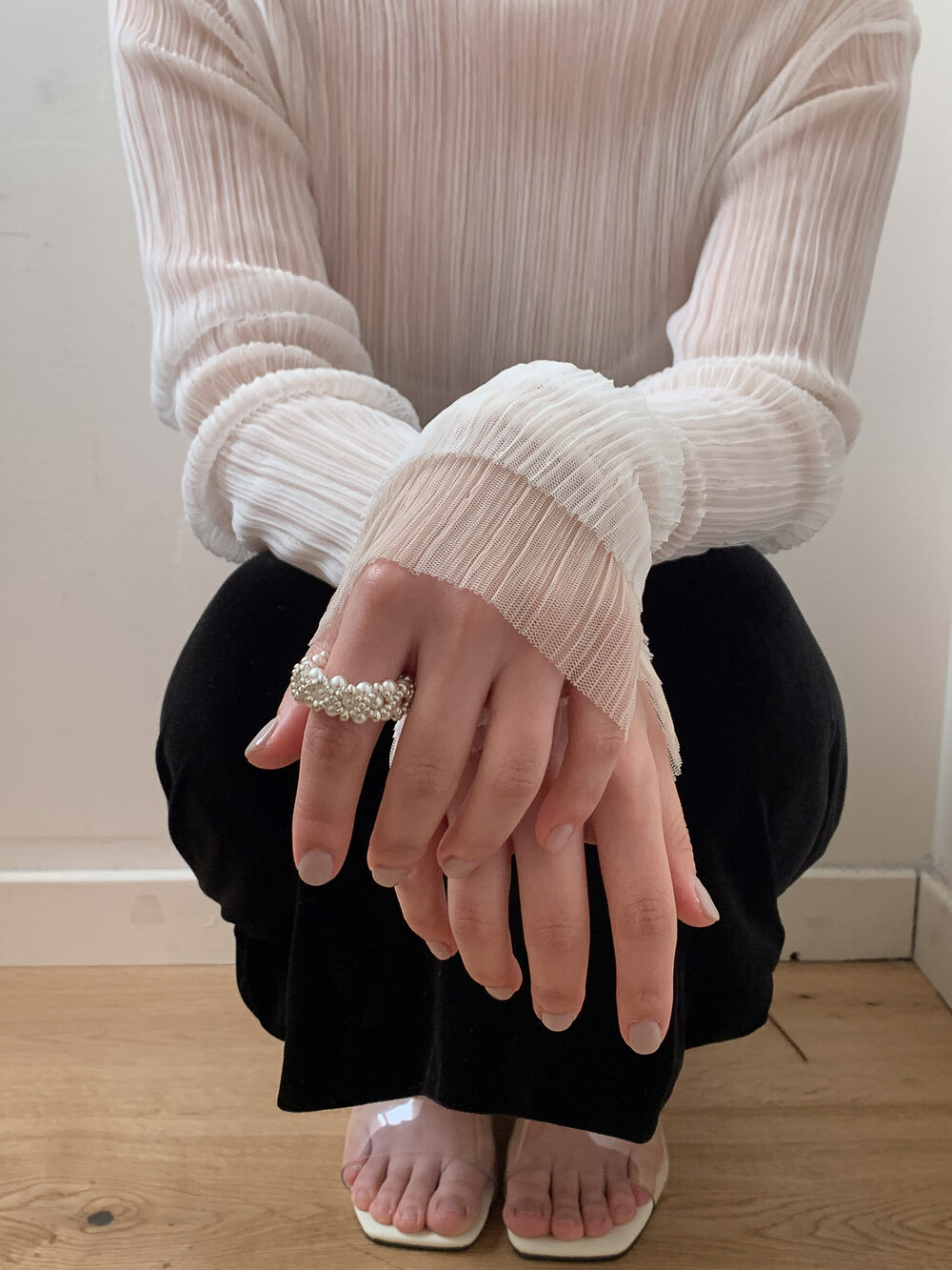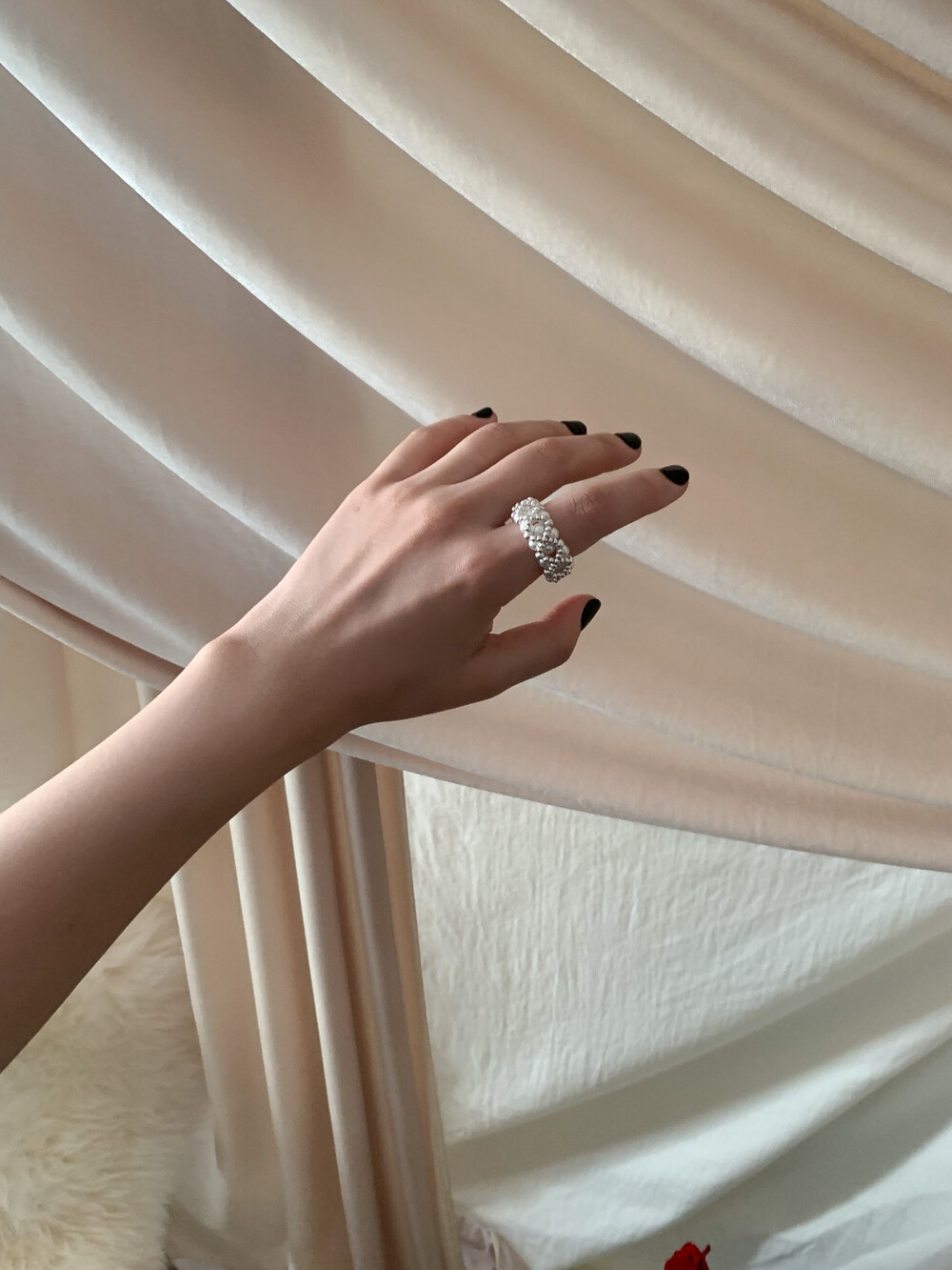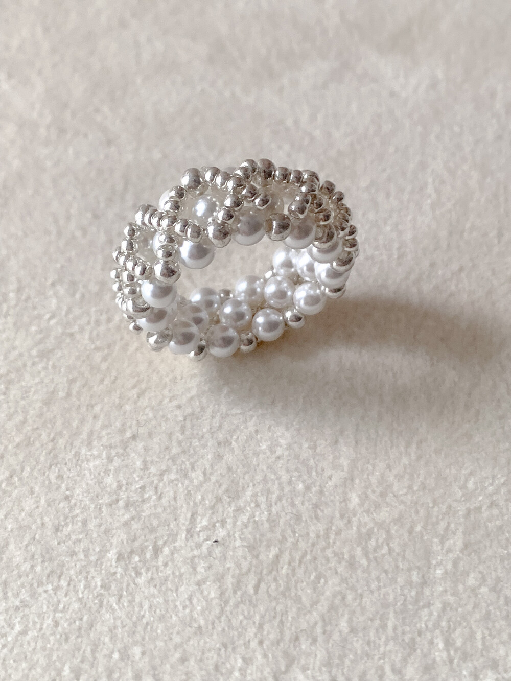 - pearl ring 특성상 금속 반지와 달리 사용 기간에 따라 연결 끈이 늘어날 수 있으며,