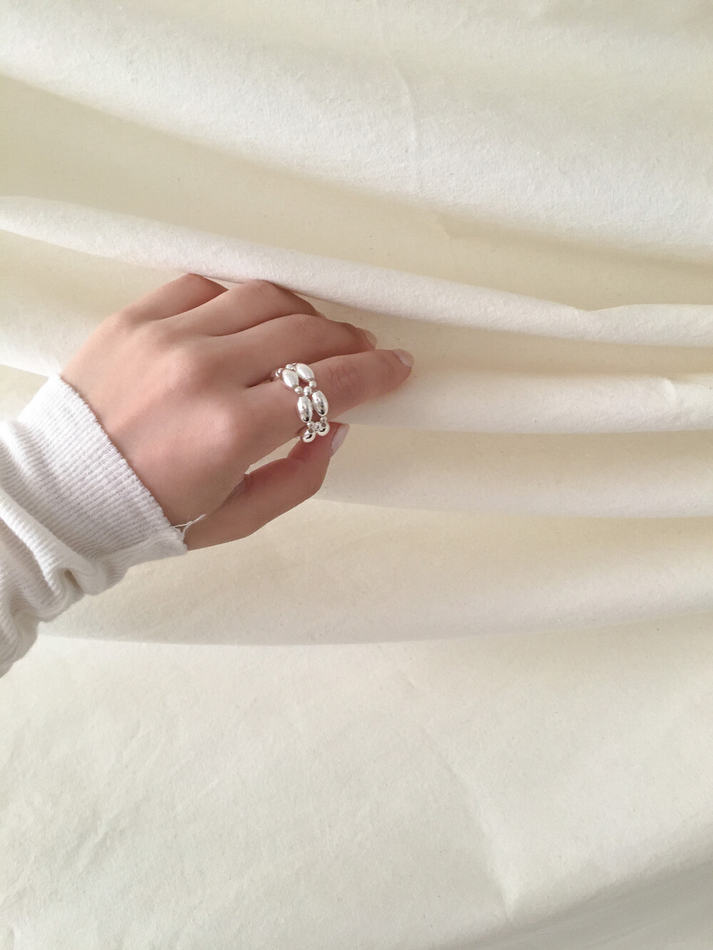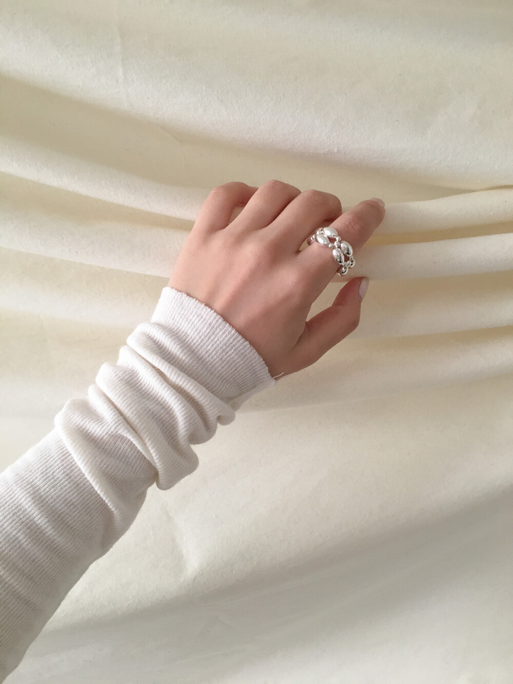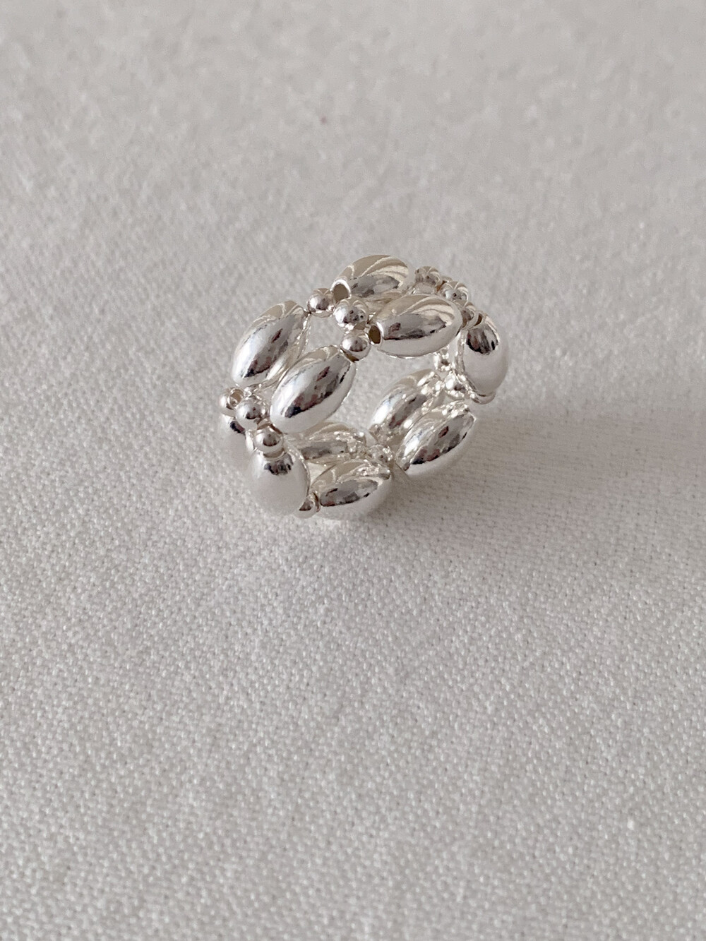 All Sterling Silver925 로 실버 특유의 선명한 광택감이 아름다운 모노 링입니다. 볼드한 구조이지만 어떤 룩에도 쉽게 조화되며, 단번에 존재감을 남긴답니다. 오벌 타입의 통통한 실버볼이 단단한 링의 형태를 만들어주어, 모양이 망가지지 않습니다.