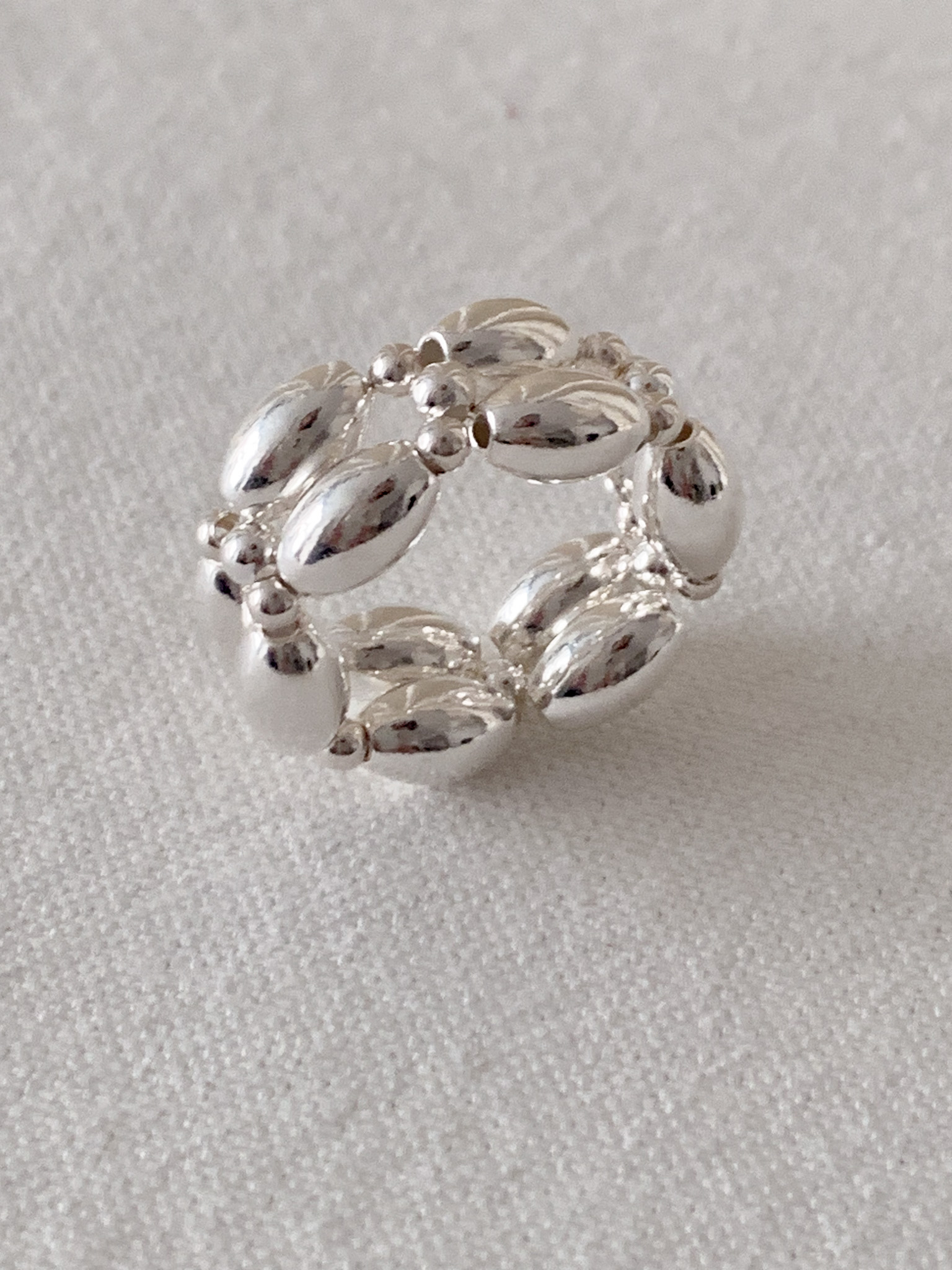 **해당 링은 2가지의 사이즈로만 구성되어 있습니다. 볼드한 실버볼 특성상 3가지의 호수를 표기하였습니다. 사이즈 상담이 가능하오니, QNA보드에 접수 부탁드립니다. (늘어나는 끈을 사용하지 않습니다. 고탄력의 비달론사를 이용해 제작되며, 둥근 형태감으로 쉬운 착용이 가능합니다.)