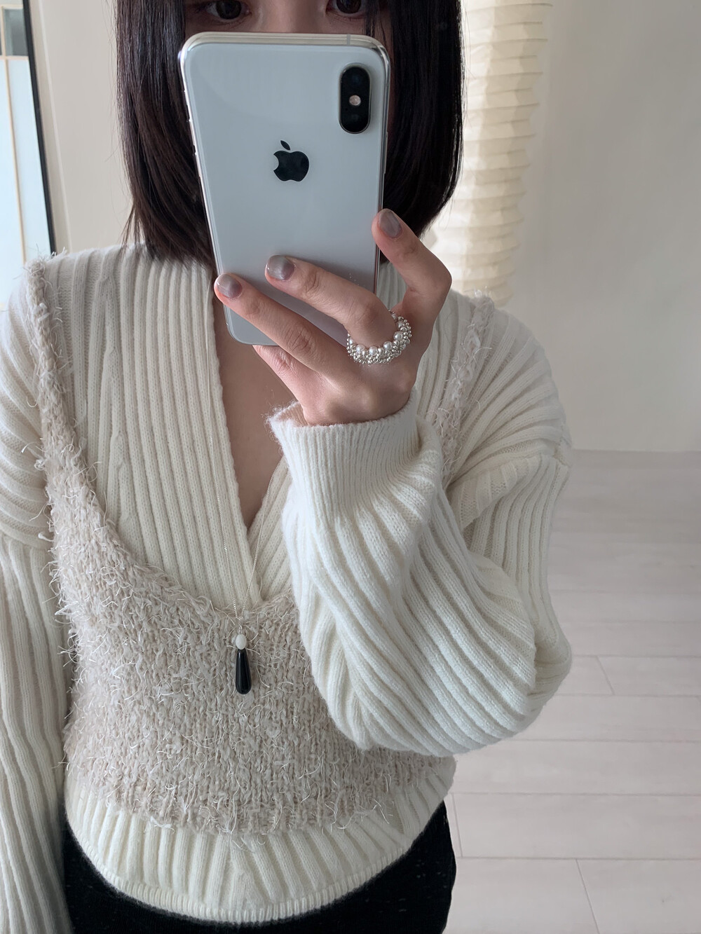 심플한 포인트가 되어줍니다. 엔틱한 실버 고리로 실버 체인과의 조화가 매력적으로 어우러집니다.