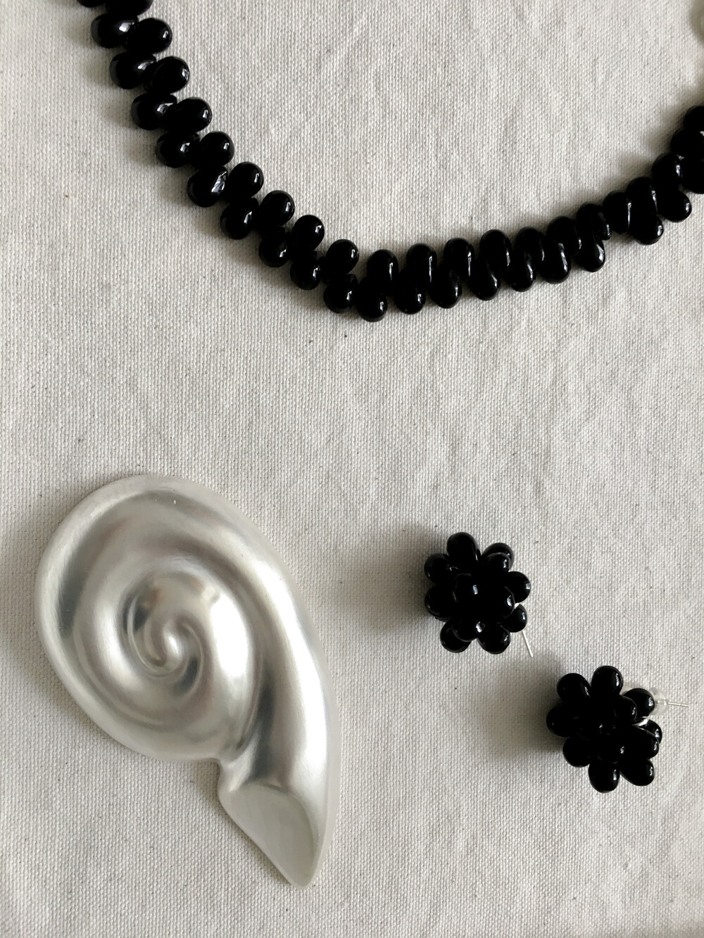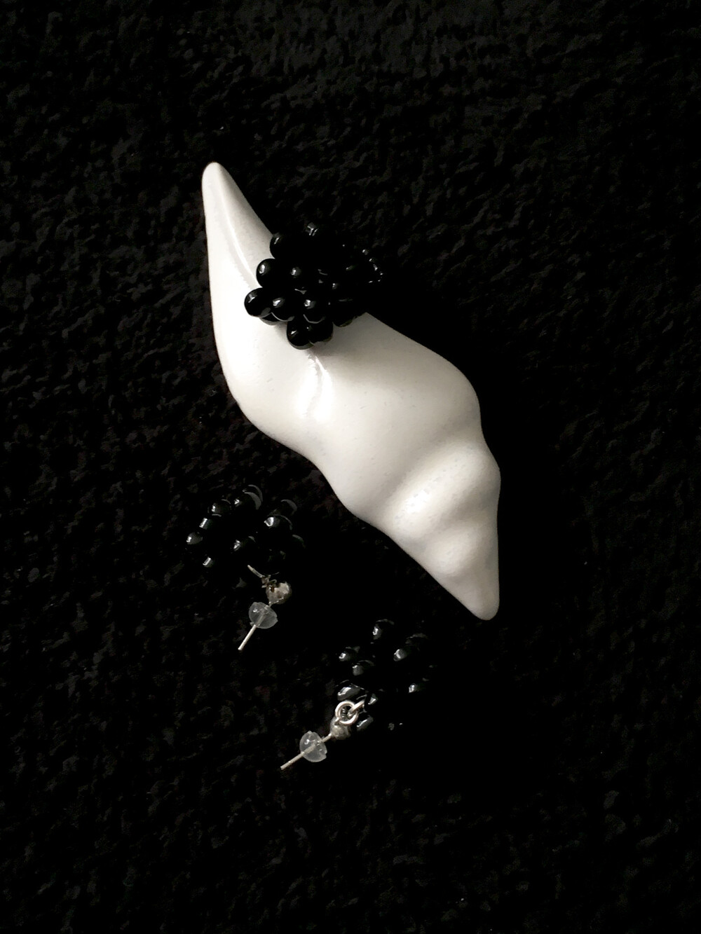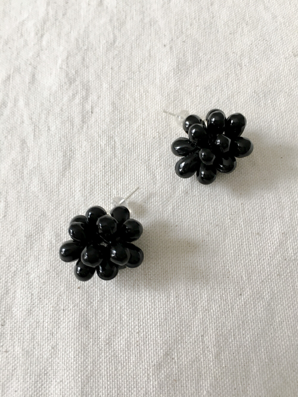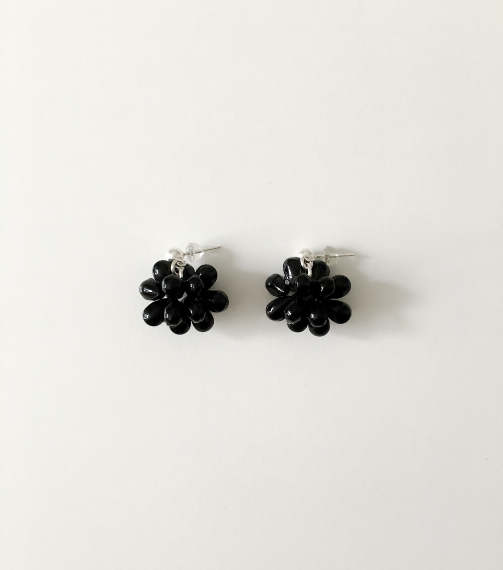 에센셜한 블랙 이어링입니다. 딥 블랙 오닉스 글라스의 매력을 극대화하기 위해 여러 번의 수정 끝에 완성된 오브 이어링으로, 양방향으로 섬세하게 엮어 포도송이 같기도, 꽃을 닮기도 한 유니크한 쉐입을 구현했습니다. 귓볼 바로 아래에 닿는 짧은 길이로 캐주얼하면서도 웨어러블하게 즐기실 수 있답니다. 은은한 광택의 오닉스로 룩에 심심하지 않은 포인트를 더해줍니다.
