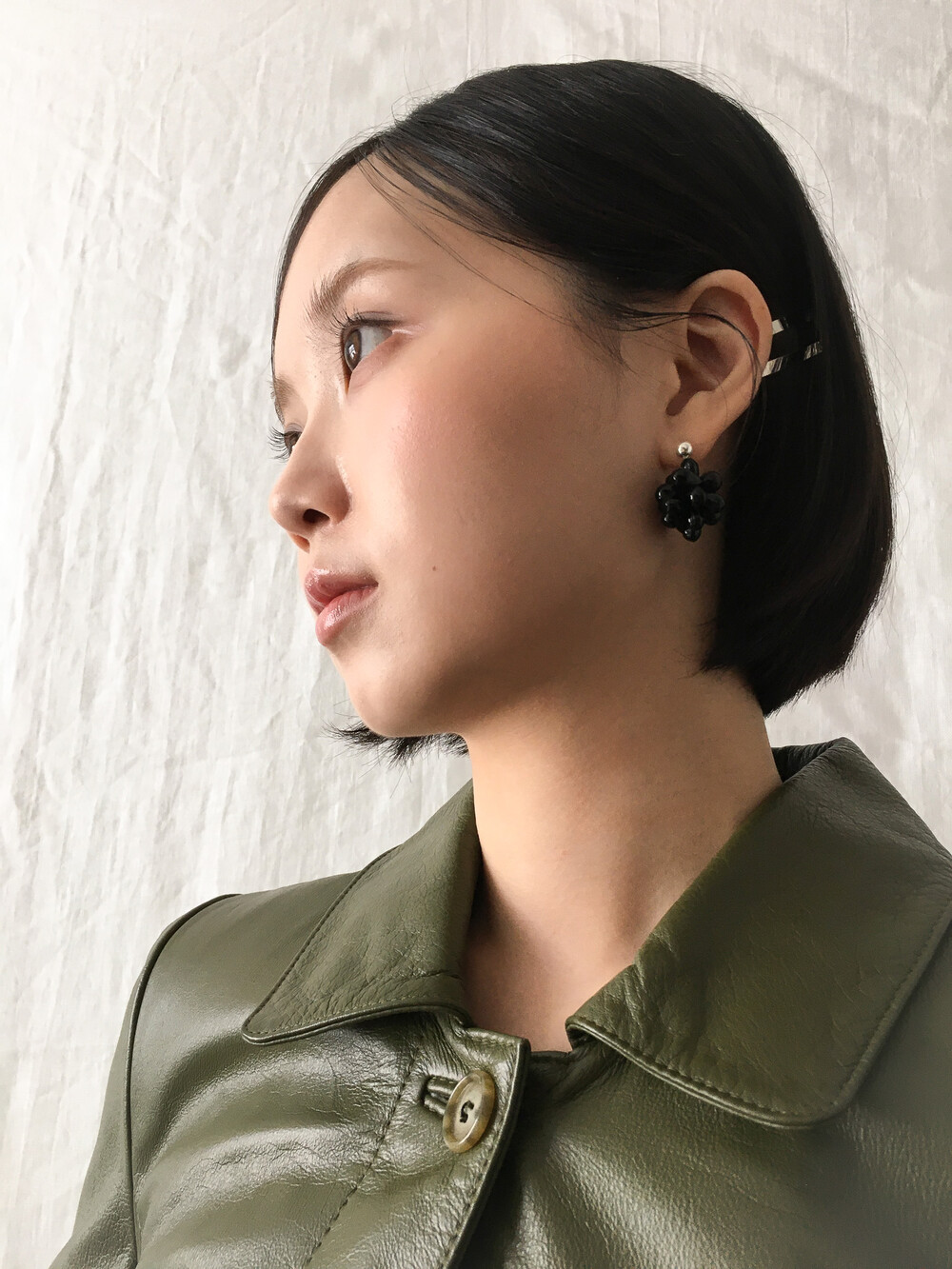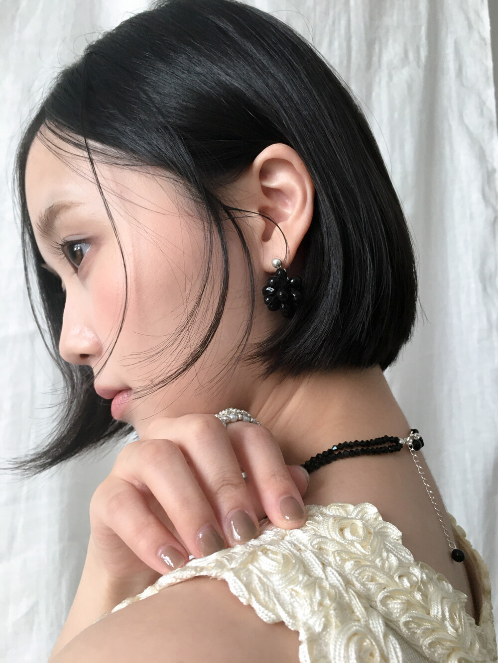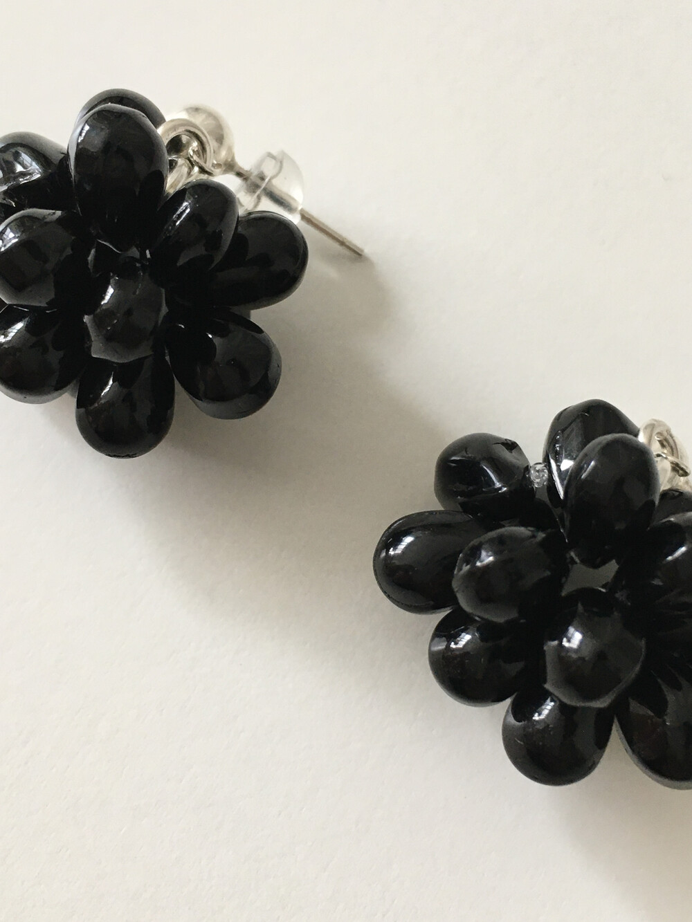 에센셜한 블랙 이어링입니다. 딥 블랙 오닉스 글라스의 매력을 극대화하기 위해 여러 번의 수정 끝에 완성된 오브 이어링으로, 양방향으로 섬세하게 엮어 포도송이 같기도, 꽃을 닮기도 한 유니크한 쉐입을 구현했습니다. 귓볼 바로 아래에 닿는 짧은 길이로 캐주얼하면서도 웨어러블하게 즐기실 수 있답니다. 은은한 광택의 오닉스로 룩에 심심하지 않은 포인트를 더해줍니다.