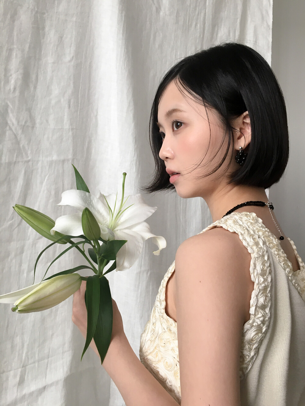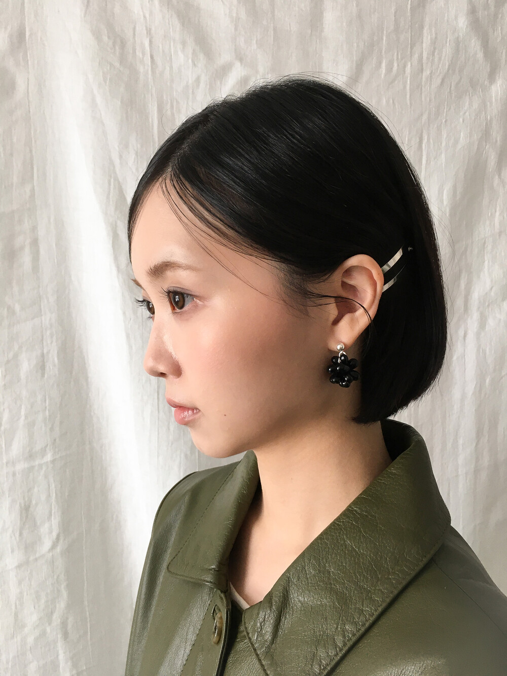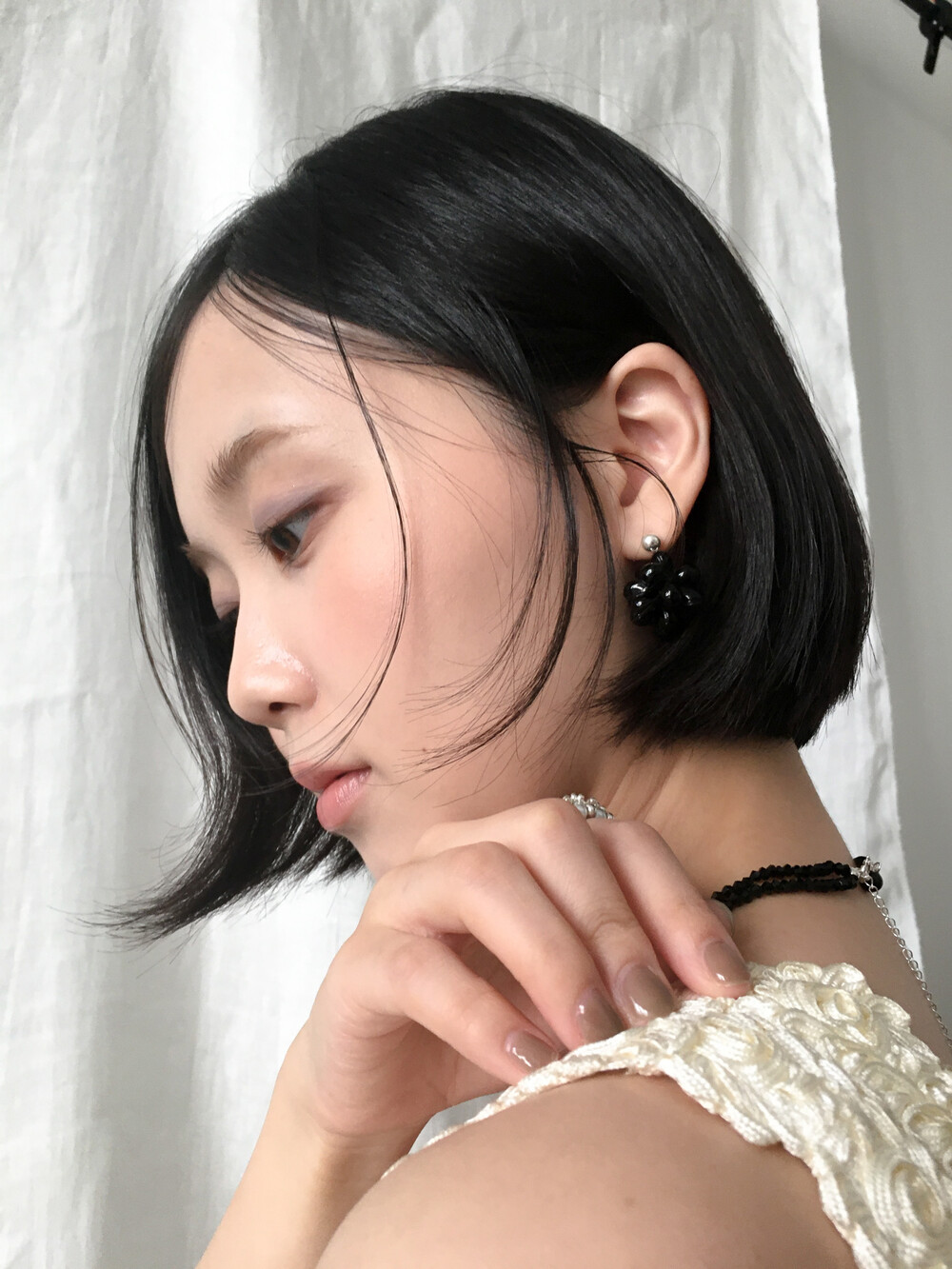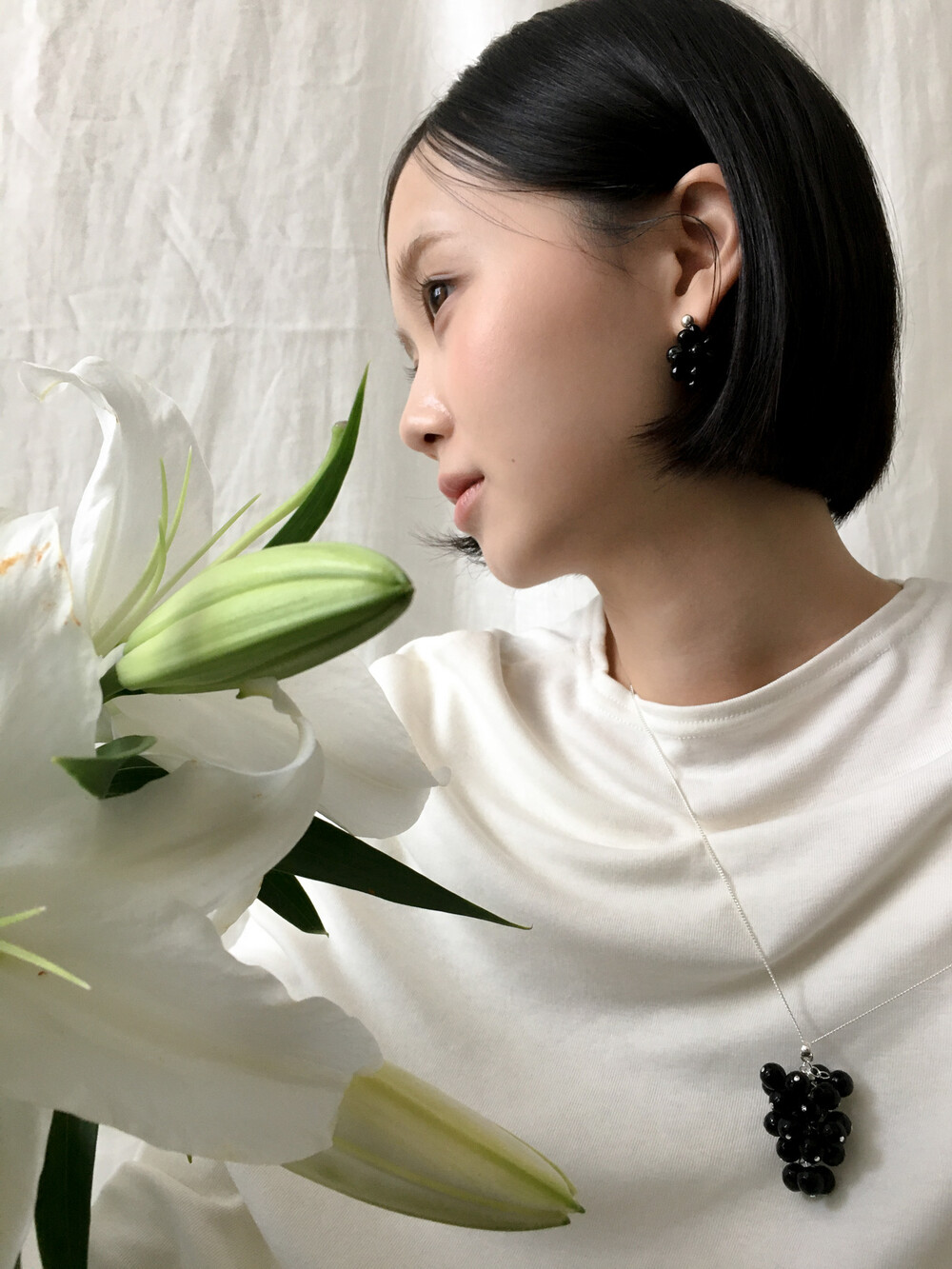 에센셜한 블랙 이어링입니다. 딥 블랙 오닉스 글라스의 매력을 극대화하기 위해 여러 번의 수정 끝에 완성된 오브 이어링으로, 양방향으로 섬세하게 엮어 포도송이 같기도, 꽃을 닮기도 한 유니크한 쉐입을 구현했습니다. 귓볼 바로 아래에 닿는 짧은 길이로 캐주얼하면서도 웨어러블하게 즐기실 수 있답니다. 은은한 광택의 오닉스로 룩에 심심하지 않은 포인트를 더해줍니다.