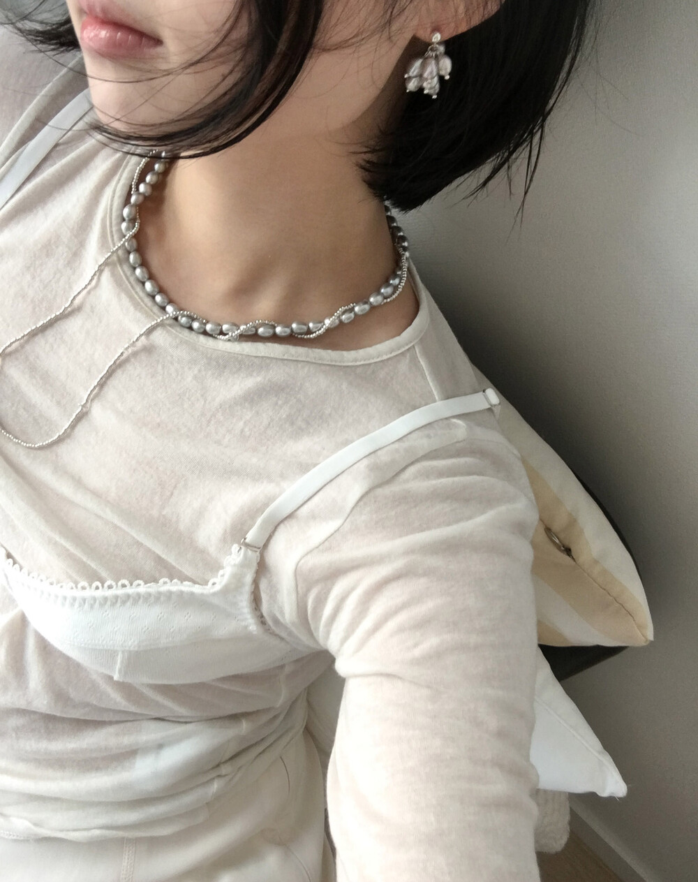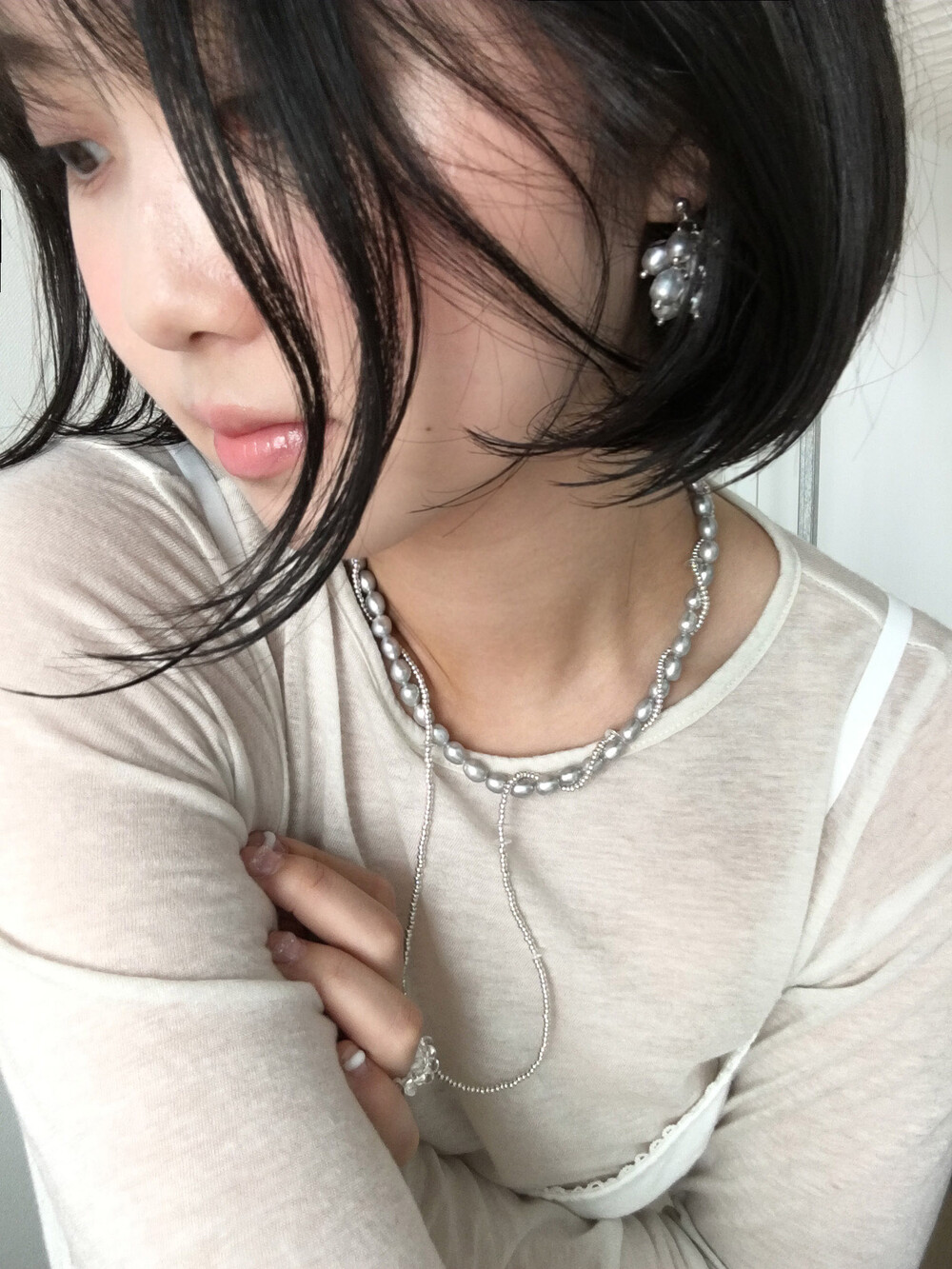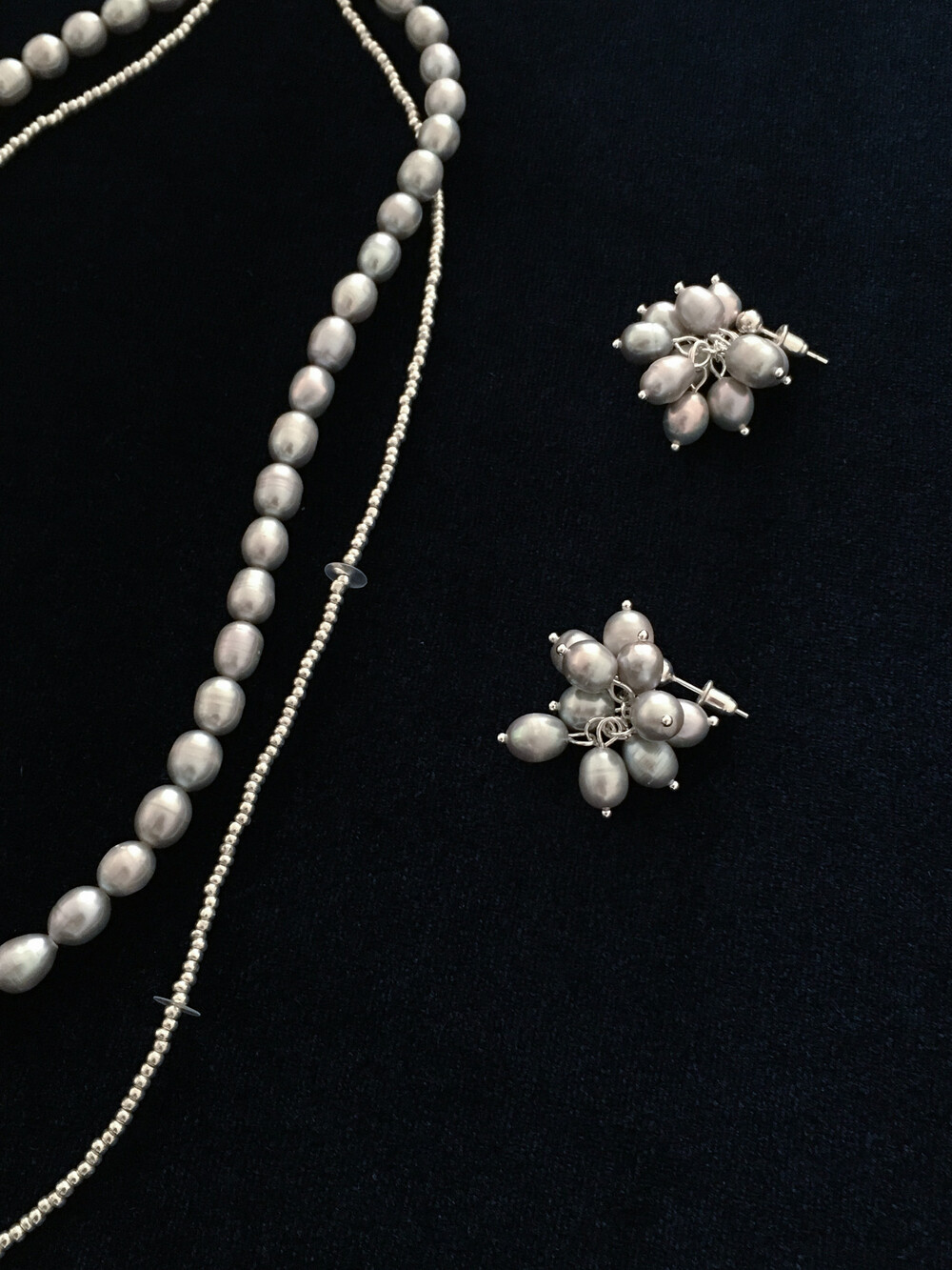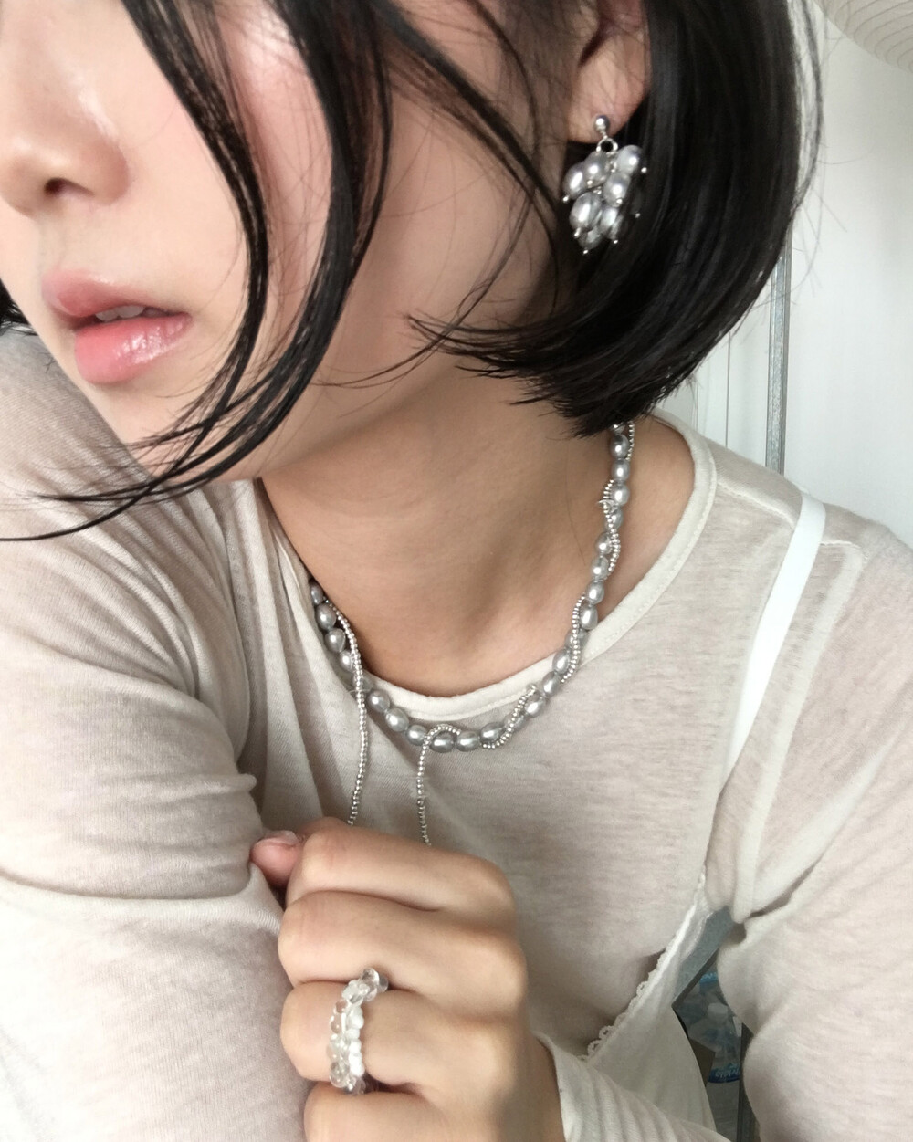 탁한 빛이 돌지 않고 맑은 실버 광택의 진주를 선별하여 제작된답니다.