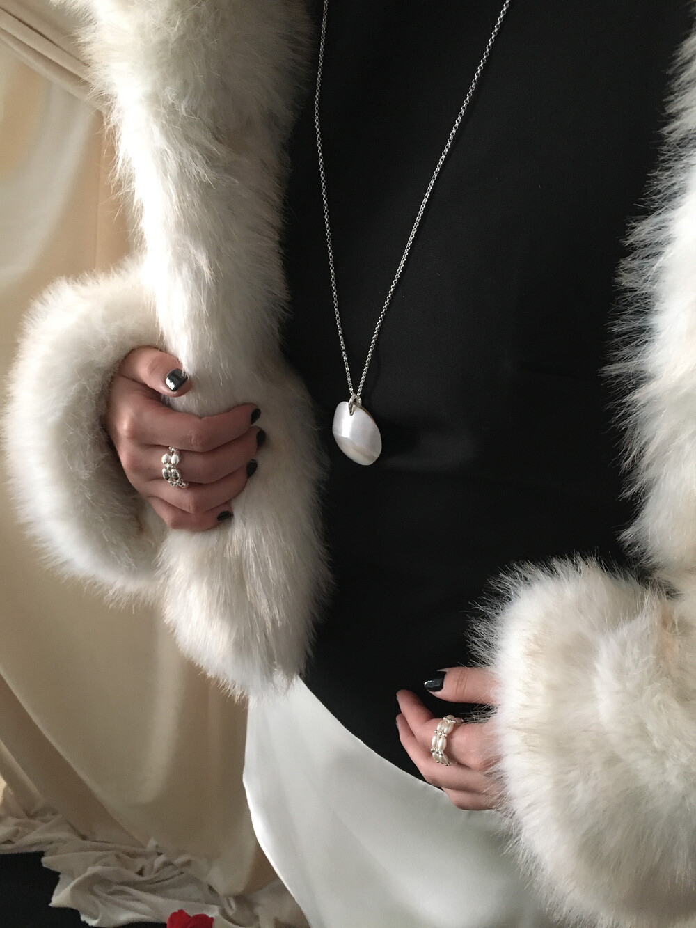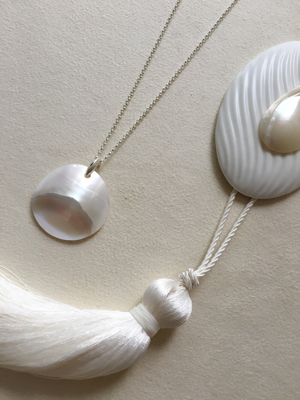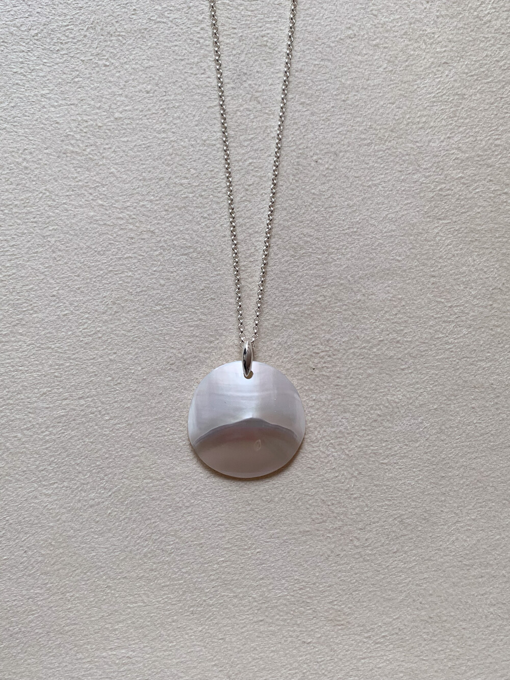 새틴 쉘의 부드럽고 아름다운 나강 자개 펜던트의 롱 네크리스입니다. 실크처럼 은은한 광이 감도는 네크리스로, 담백하고 차분하답니다. 각기 비슷한 듯 다른 쉐입을 가진 자개로 본래 펜던트용이 아니나, 작업자의 섬세한 손길로 하나하나 목걸이용 펜던트로 제작됩니다. Sterling Silver의 두께감 있는 고방 체인으로 반짝이는 실버 광택감이 고급지답니다. 물방울 형태와 둥근 원형의 두 가지 타입으로 선택하실 수 있습니다. 자개 뒷면에는 마티타의 로고가 섬세하게 각인되어 있습니다. 단 하나의 스타일링 만으로도 전체적인 룩의 분위기가 더욱 우아하게 표현됩니다. 순간순간 즐겁게 손길이 닿는 네크리스로 경험해 보세요.