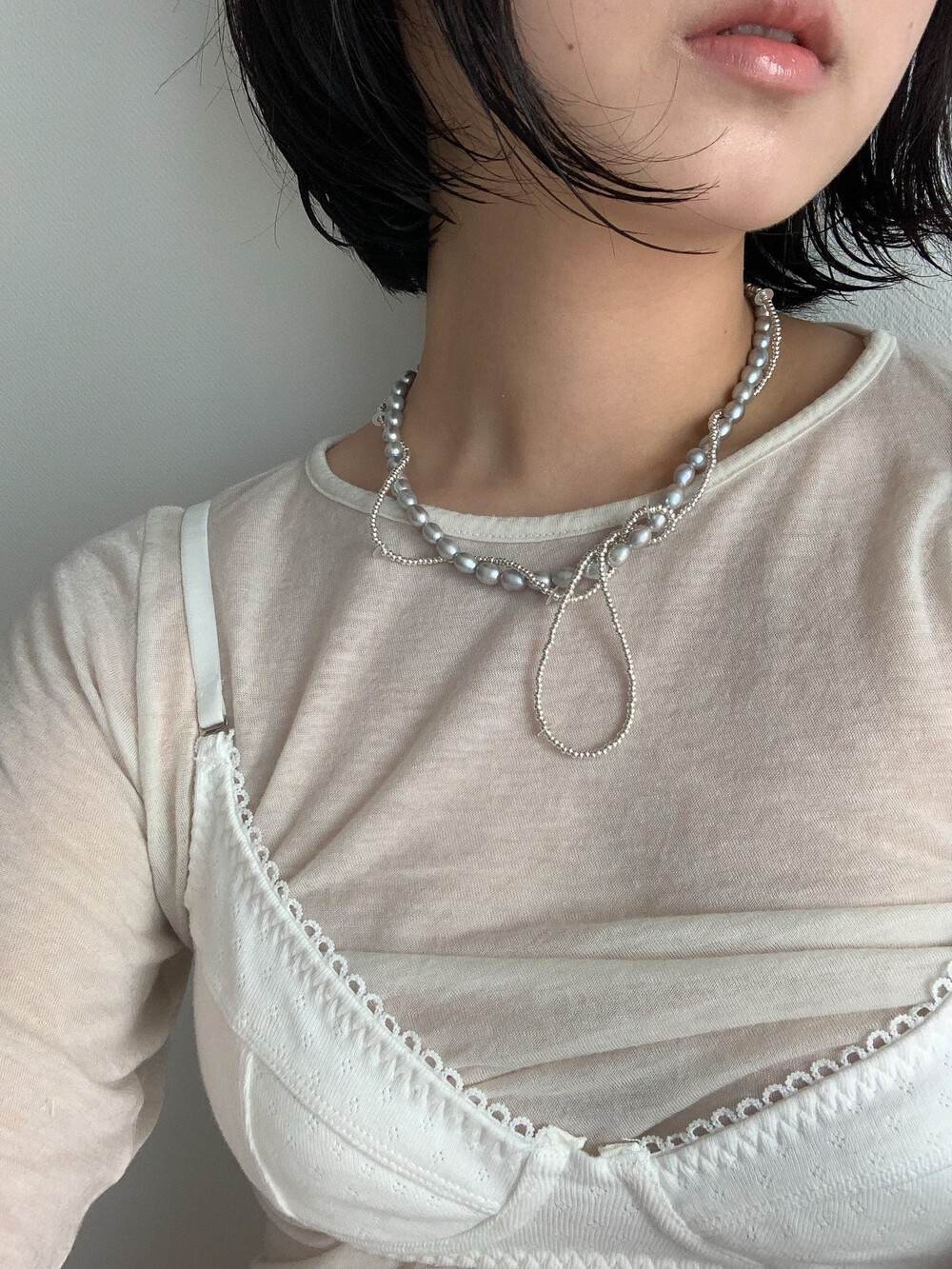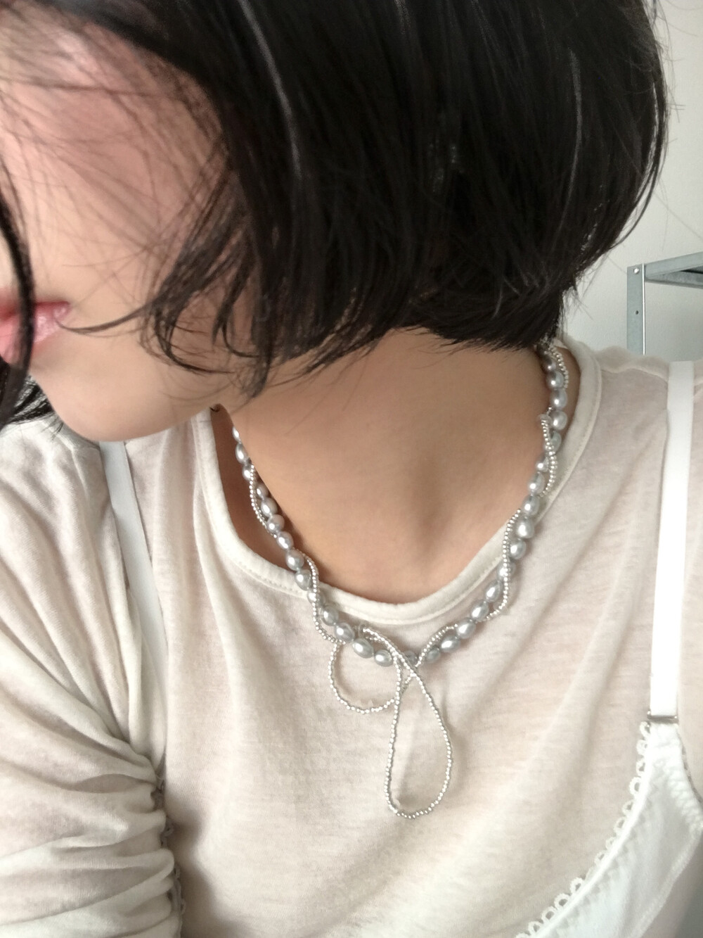 긴 비즈 라인을 돌돌 꼬아 숏한 기장감으로도 즐겨보세요.