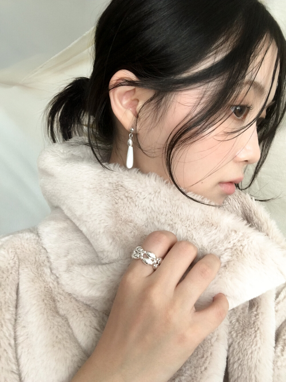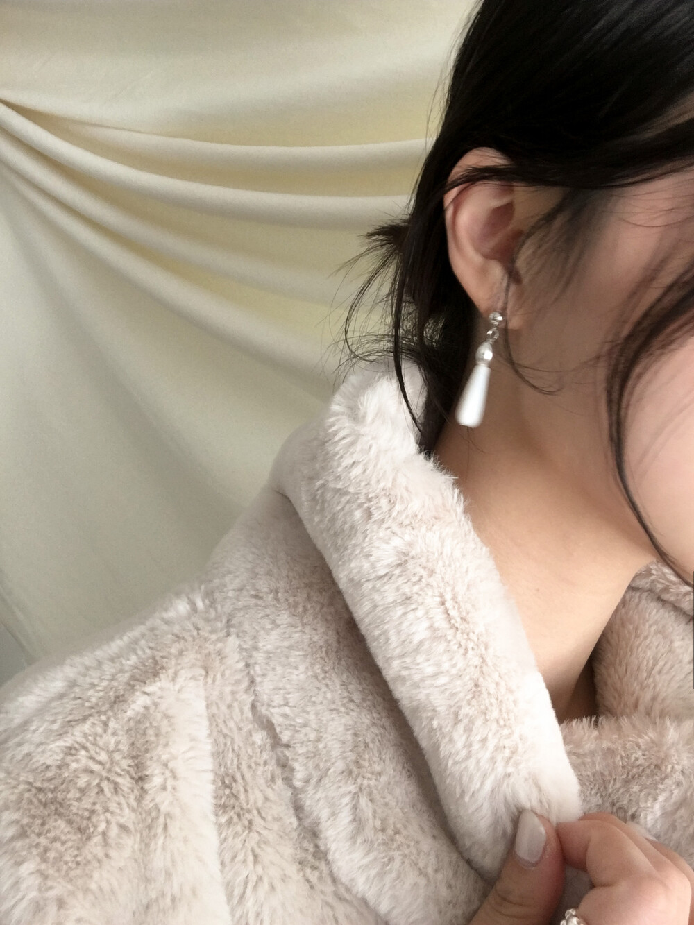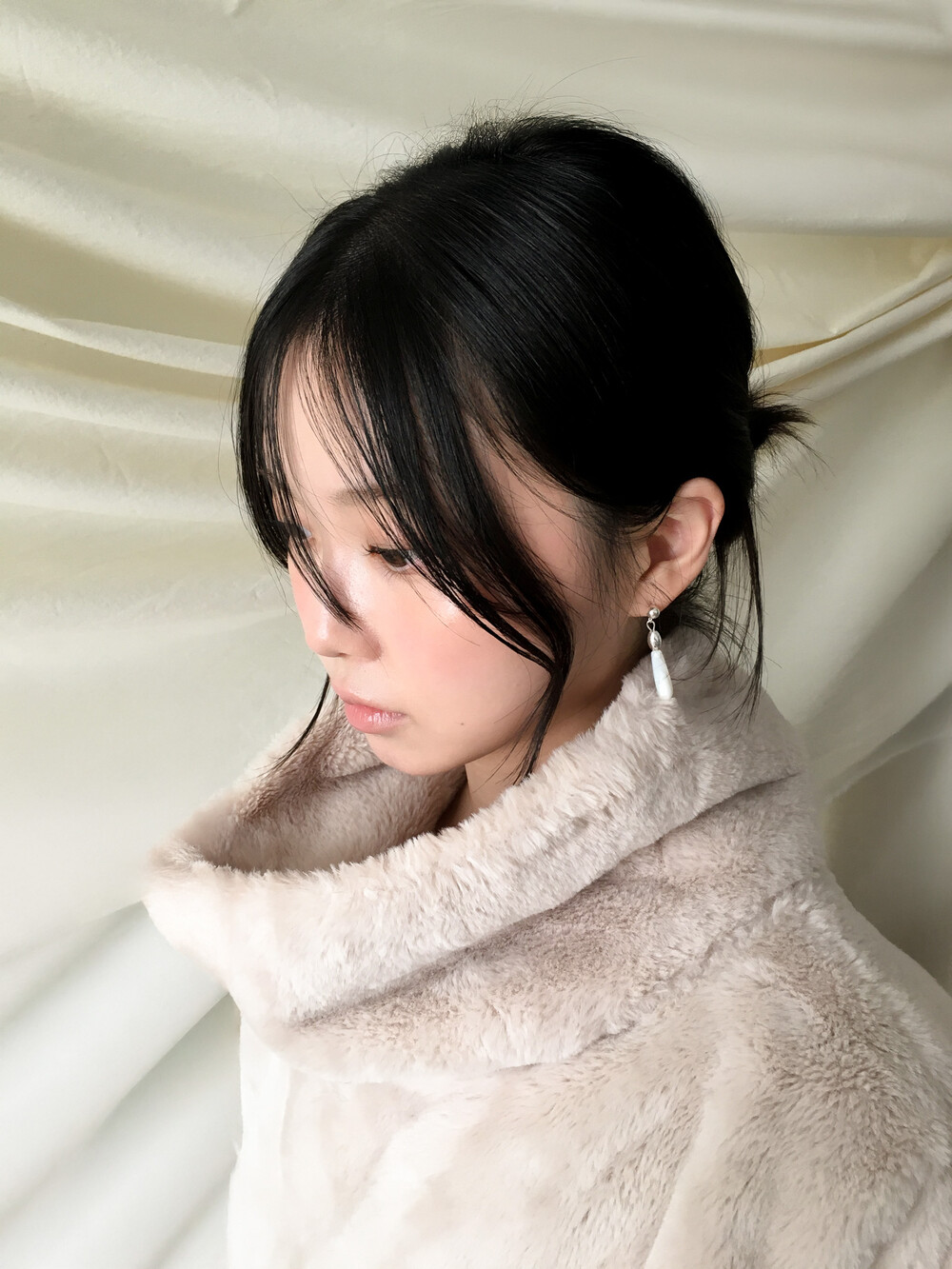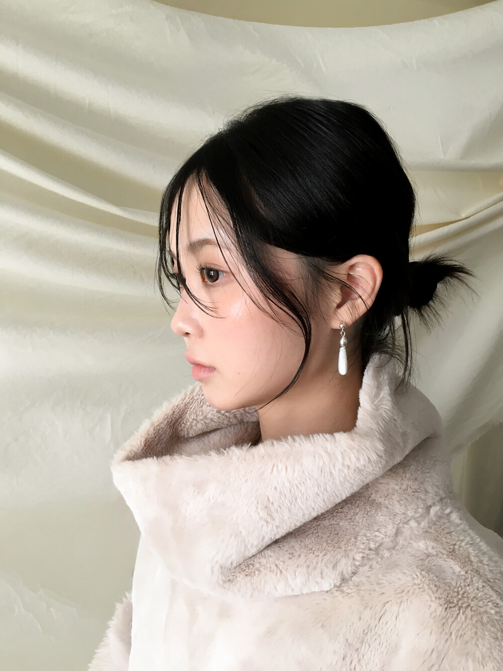 화이티한 색감과 매우 우아한 드롭 형태의 실루엣으로, 너무나 매력적인 자개 이어링입니다.