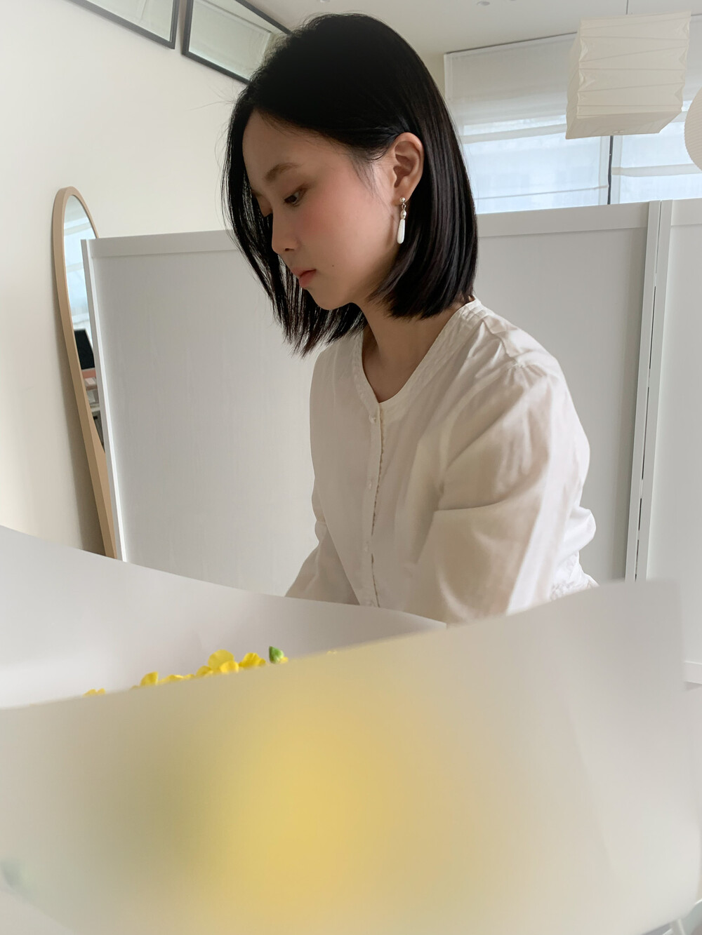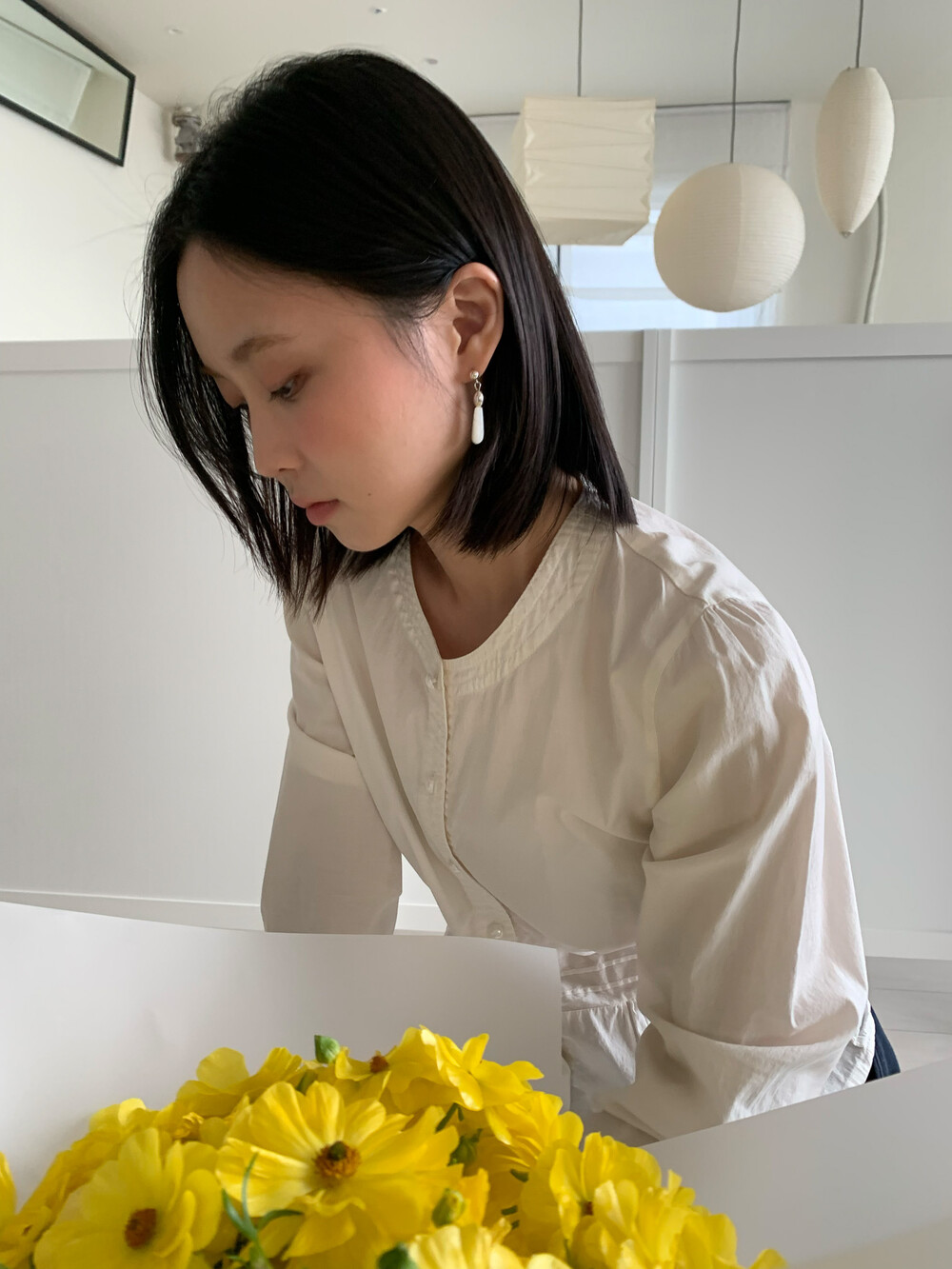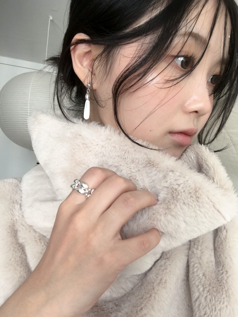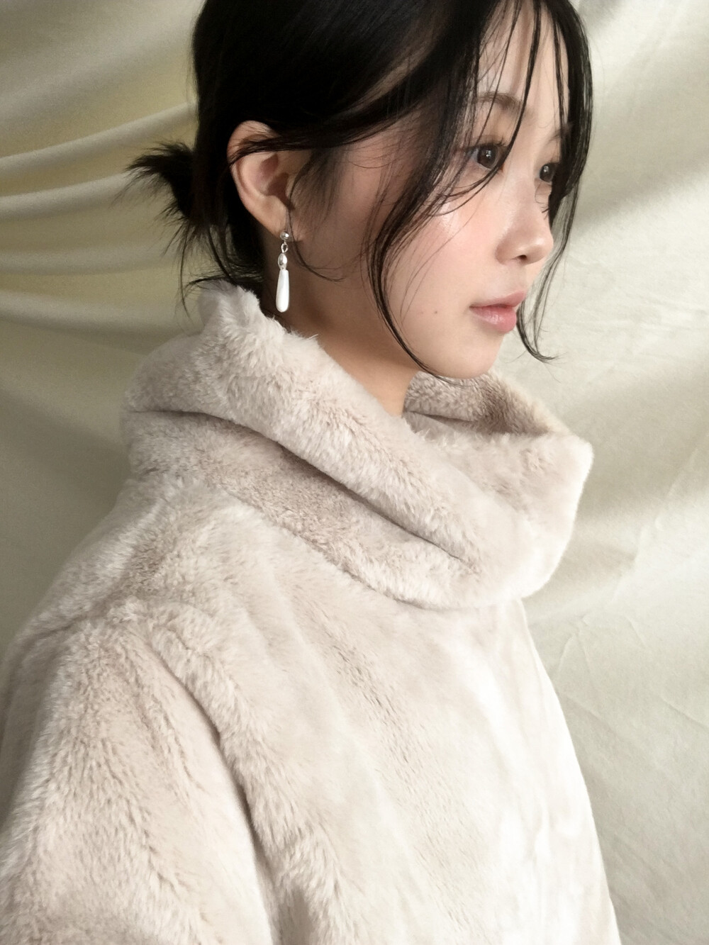 화이티한 색감과 매우 우아한 드롭 형태의 실루엣으로, 너무나 매력적인 자개 이어링입니다.